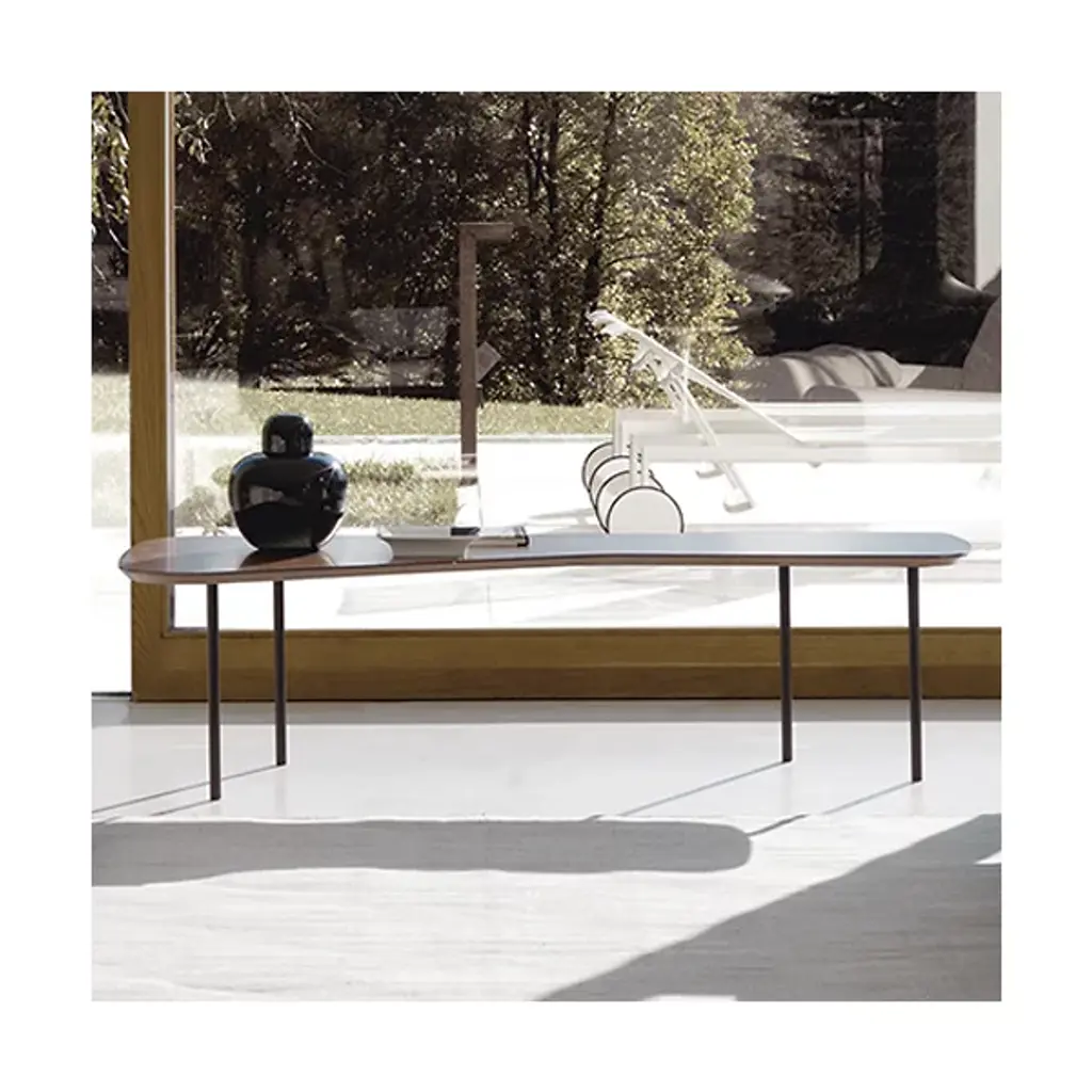 Designed in 1948 for Knoll, the unique free form shape of the Girard Tables holds a silhouette distinctive to mid-century modern classics: clean lines merged with organic shapes. Legs are cold-roll steel tubes with medal welding in black powder coat. The top, available in several veneer finishes features a 0.75" Baltic birch core and a 45 degree beveled edge.
