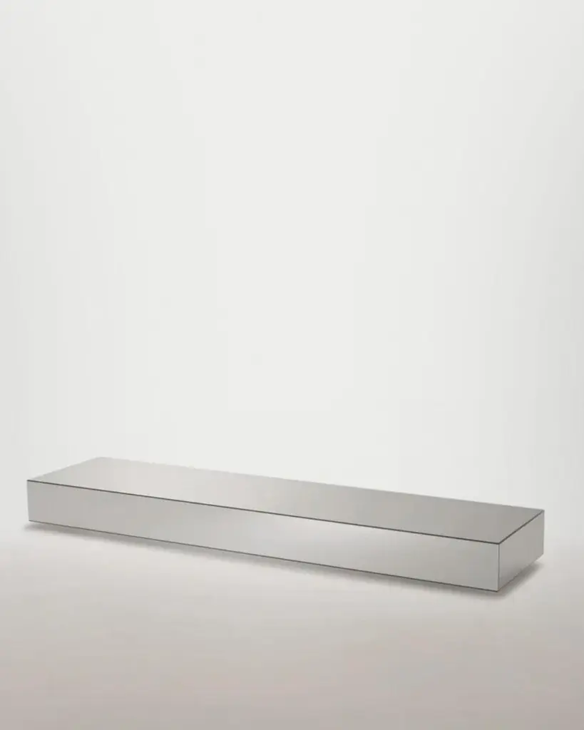 Low tables in extralight transparent glass, available in two different sizes. A complex and innovative curvature, characterized by particularly daring angles and gradients, confers great dynamism and plasticity to the low tables. This technical virtuosity gives the low table an extremely light appearance.Available finishes: 500. ExtralightDIMENSIONS:• Medium - L58 W58 H33 cm• Small - L50 W50 H57 cm