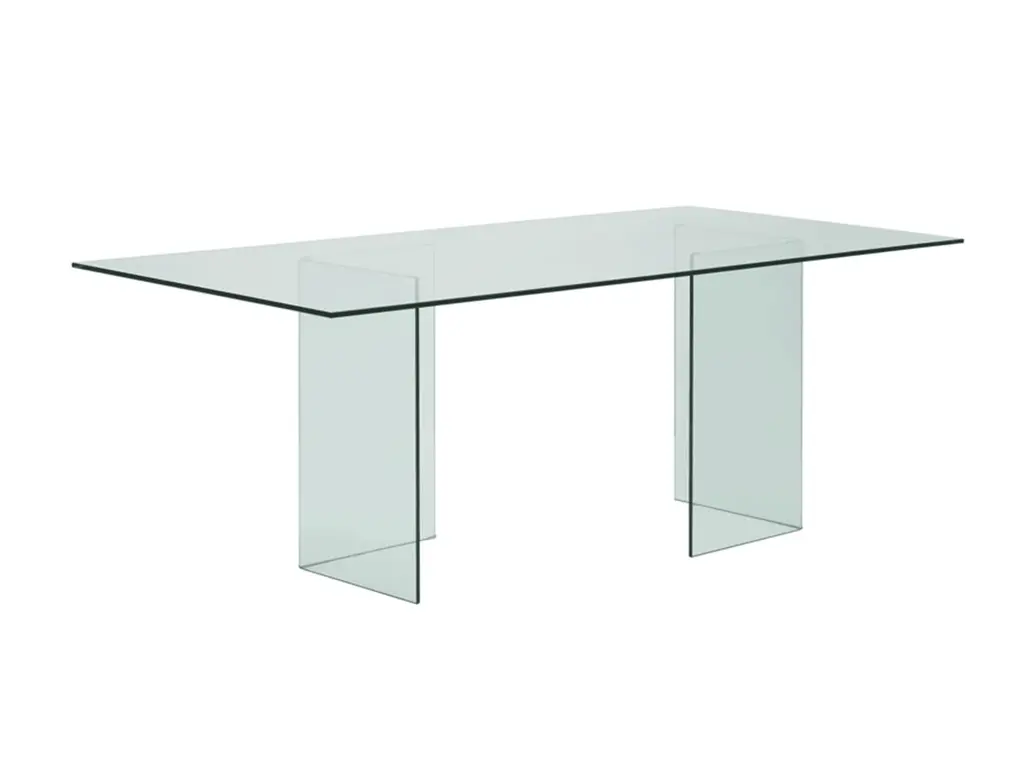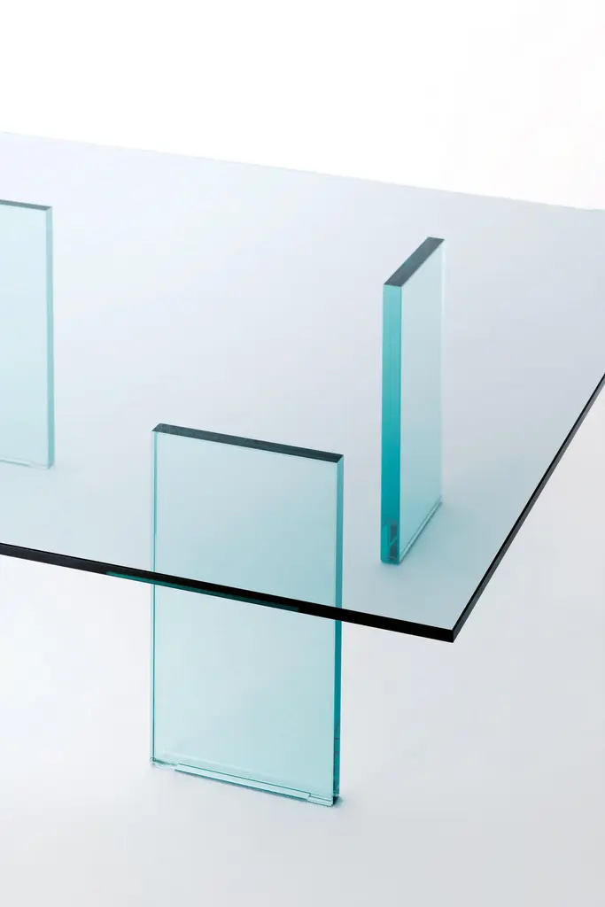 Shown here is the glass table 1976. The low table characterised by the very refined minimal aspect with feet in mm. 24 thick transparent glass, thermo-welded to the top in mm. 12 thick transparent tempered glass. Historical and iconic product of the international design, designed in 1976 by the great master Shiro Kuramata.Please note that the list price excludes VAT. An additional VAT charge may apply.