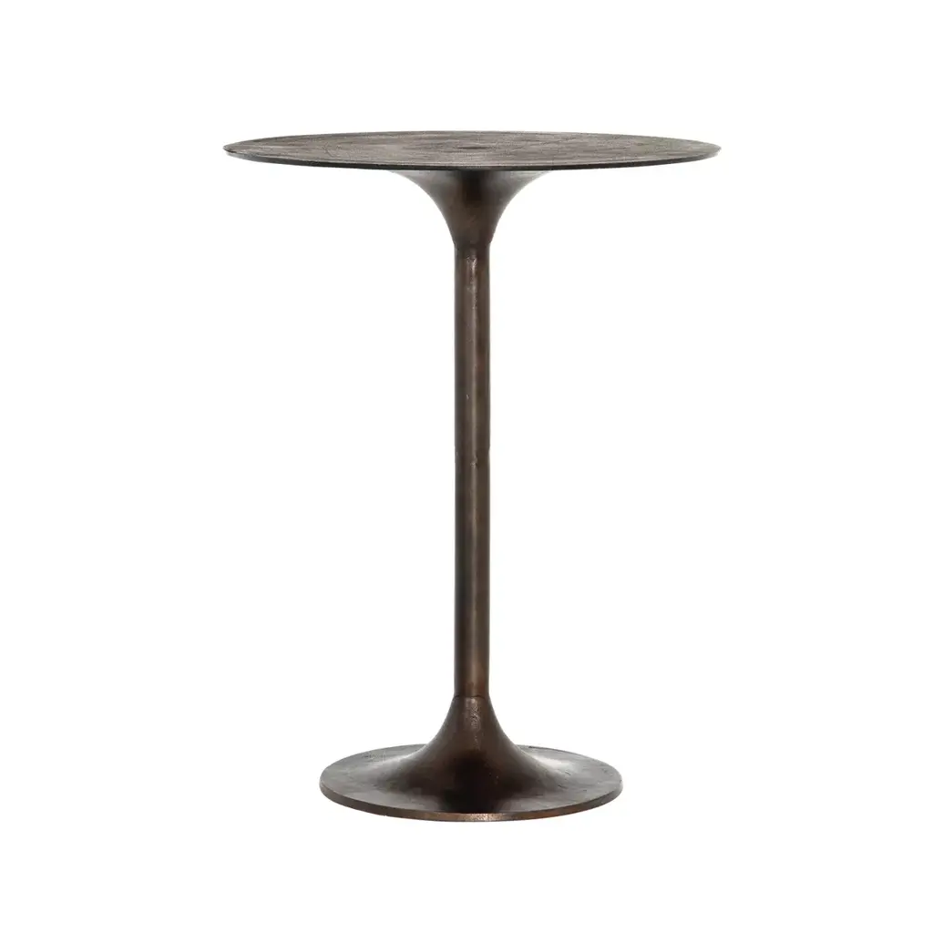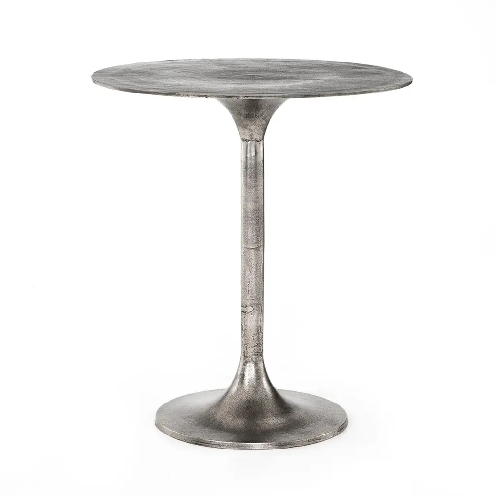 Inspired by modern, pub-style furniture, our Glenn counter table boasts classic tulip shaping and your choice of an alluring antique rust or antique nickel finish. Stylish indoors or out. Cover or store indoors during inclement weather or when not in use.
