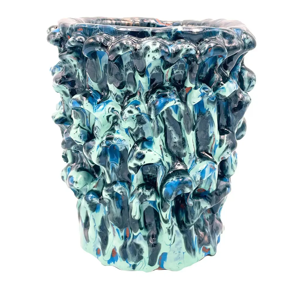 This rhombus-shaped decorative table enchants with its array of vibrant Mediterranean colors. Expertly crafted from ceramic, it features blurred lines against a blue backdrop, reminiscent of the depths of the Sicilian coastline a sea. Serving as a convivial centerpiece that celebrates the island's rich heritage, this table seamlessly blends modernity with ancient roots, adding a touch of sophistication to any interior space.