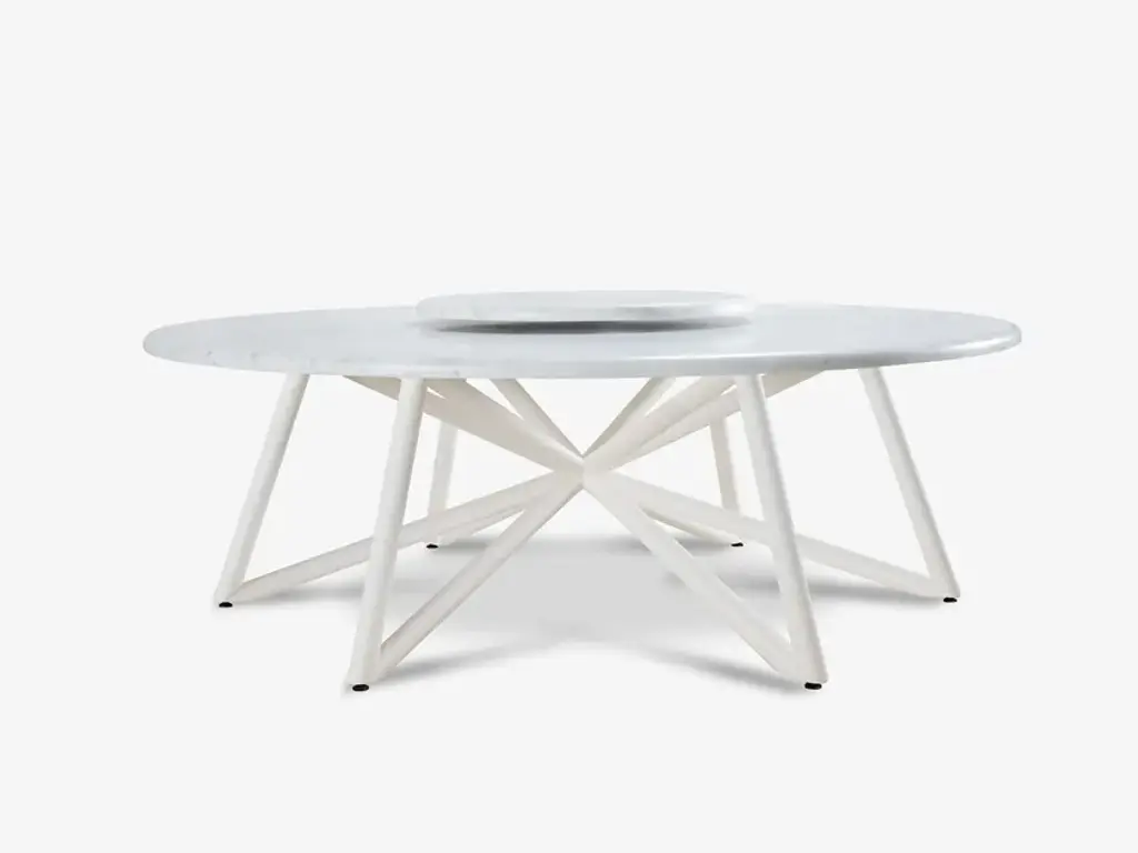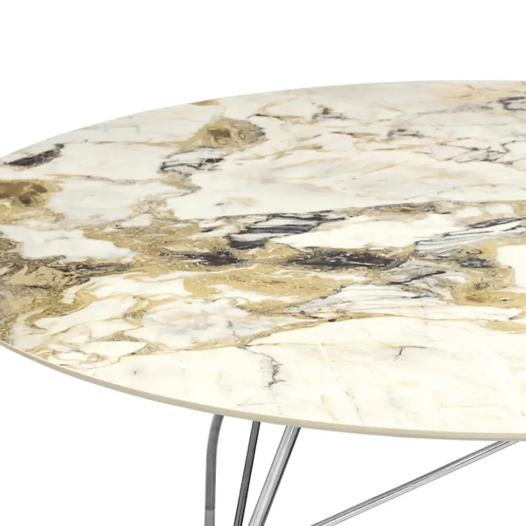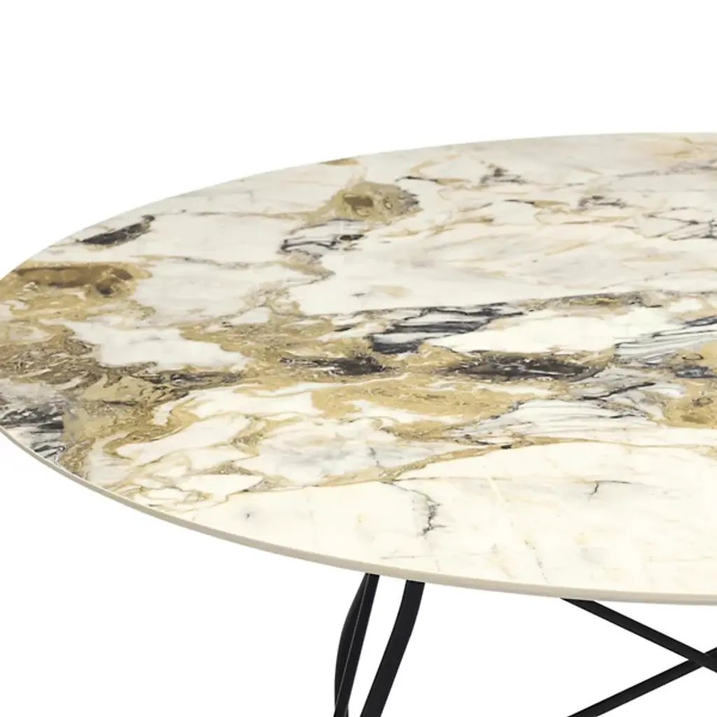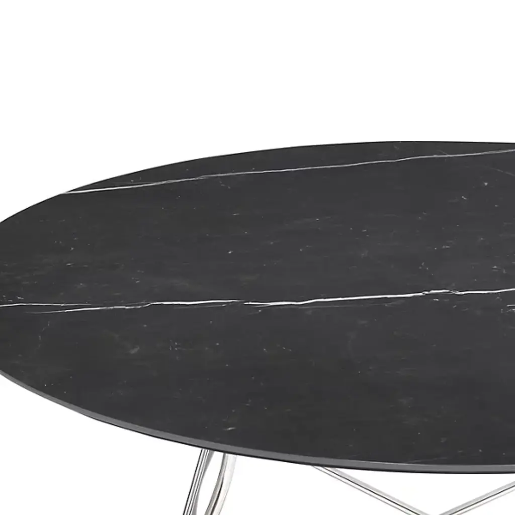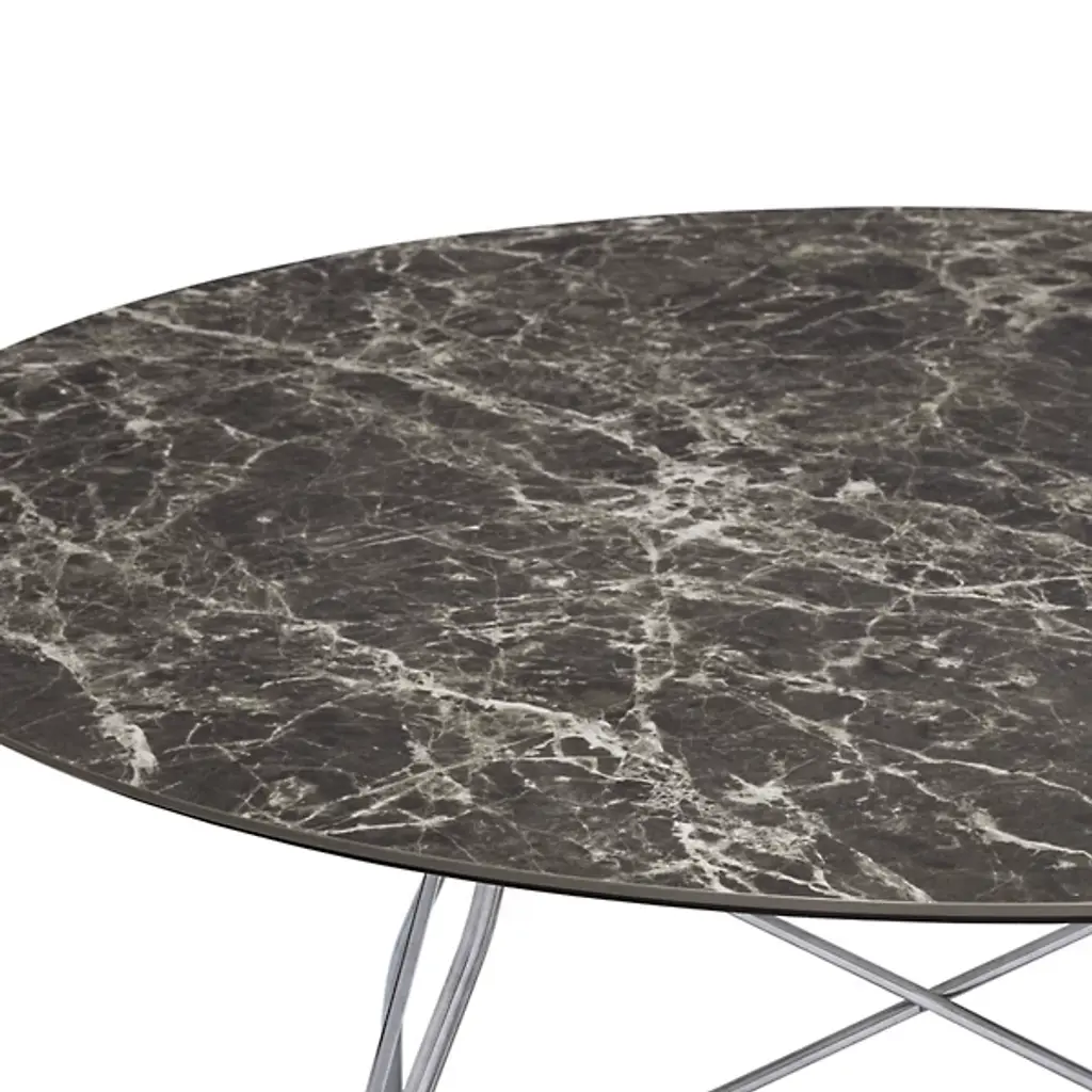 The Kartell Glossy Round Table designed by Antonio Citterio is one of a collection of tables ideal both for the home and office, characterized by a sophisticated design and elegant finishing. The light chromed steel structure criss-crosses and connects the legs on each of the four sides to support a polished polyester or laminate top. The collection comes in square, oval and round versions (packed into a practical flat package) and is available in three elegant colors: Black, White and Kartell Red.