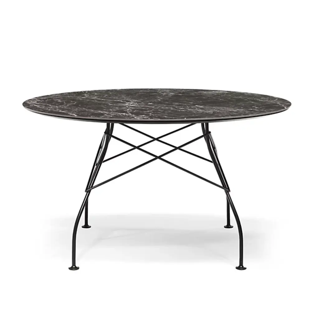 The Kartell Glossy Round Table designed by Antonio Citterio is one of a collection of tables ideal both for the home and office, characterized by a sophisticated design and elegant finishing. The light chromed steel structure criss-crosses and connects the legs on each of the four sides to support a polished polyester or laminate top. The collection comes in square, oval and round versions (packed into a practical flat package) and is available in three elegant colors: Black, White and Kartell Red.
