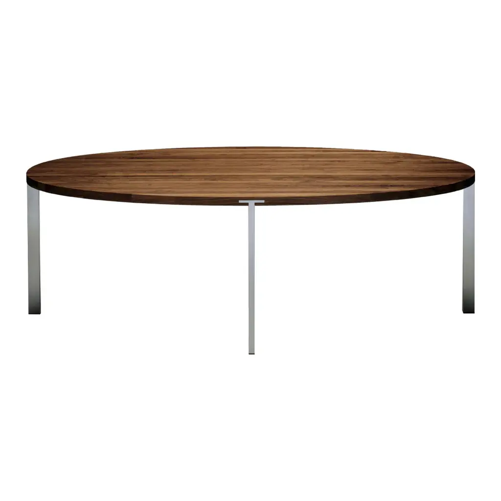 Oval table with fixed top. The table is made in 3 sizes. The table top is available in solid wood.