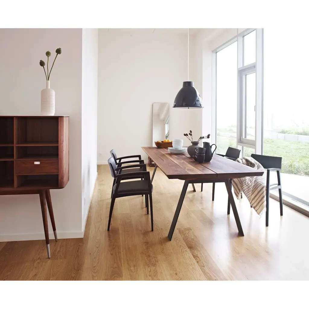 GM3200 Plank Table Designer: Nissen & Gehl MDD Manufactured by: Naver Collection Dimensions (in): see Options below The Plank table is made in 5 different sizes. The table top is made of solid wood in 40 mm/1.6 in thickness. The legs are made of oil burned steel.