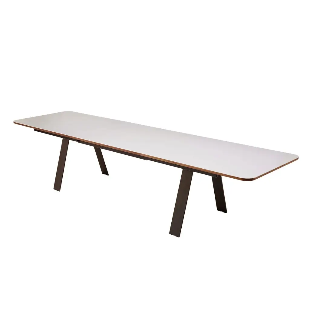GM3400 Chess Table Designer: Nissen & Gehl MDD Manufactured by: Naver Collection Dimensions (in): see Options below The Chess table with legs made of oil burned steel, table edge in solid wood and a white Corian surface. The Chess table has 100 cm/39.4 in butterfly-leaf in the middle. The table is available with edge in ash, oak or walnut.