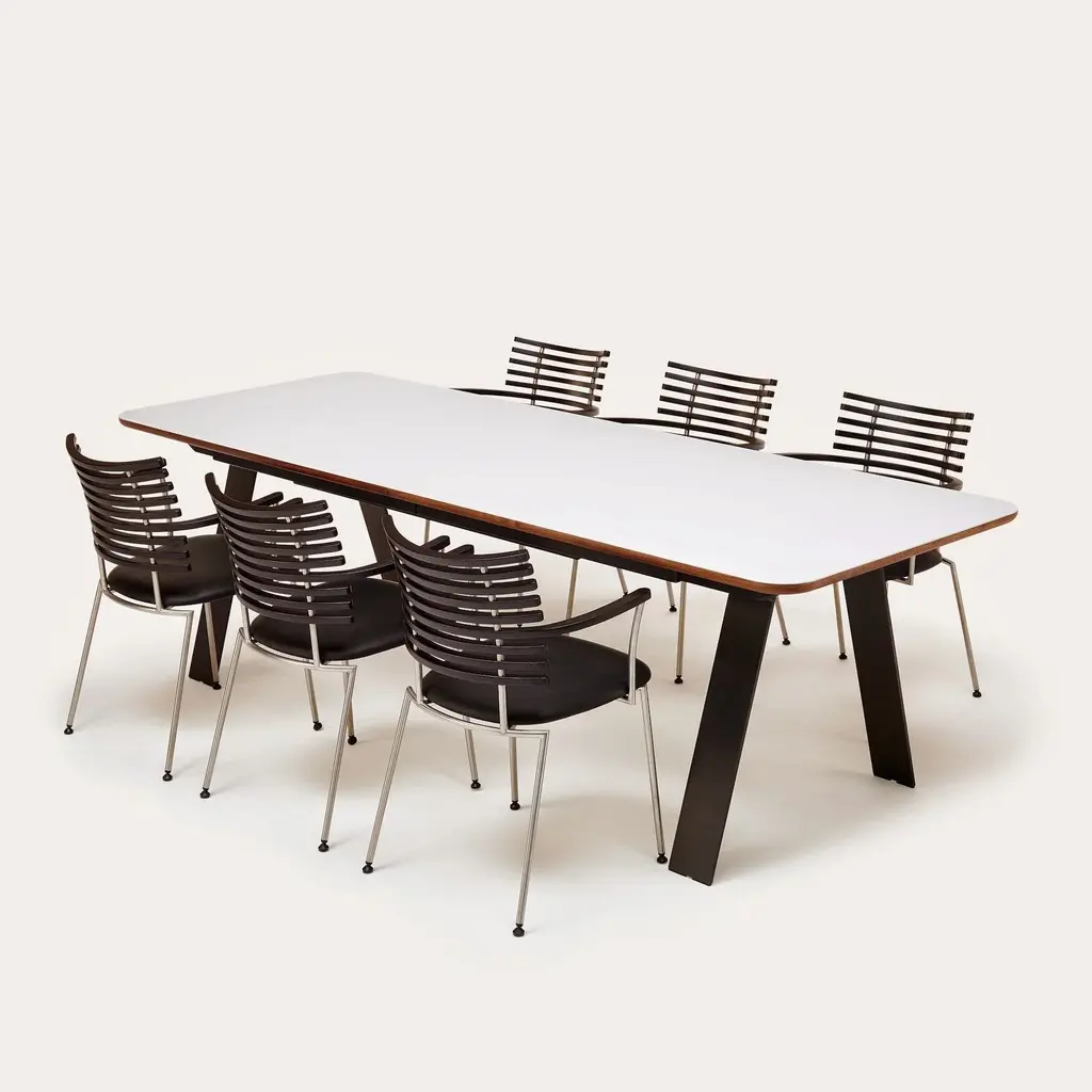 GM3400 Chess Table Designer: Nissen & Gehl MDD Manufactured by: Naver Collection Dimensions (in): see Options below The Chess table with legs made of oil burned steel, table edge in solid wood and a white Corian surface. The Chess table has 100 cm/39.4 in butterfly-leaf in the middle. The table is available with edge in ash, oak or walnut.