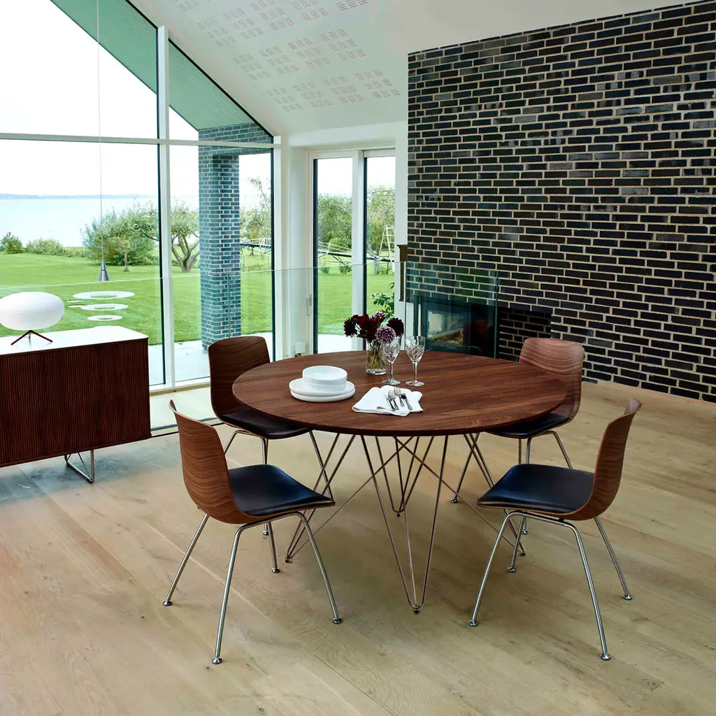 GM3800 Spider Table Designer: Nissen & Gehl MDD Manufactured by: Naver Collection Dimensions (in): see Options below The GM 3800 Spider tables design and simple curves gives the Spider table an almost iconic expression. The table is available in 2 sizes in solid wood or with a white corian top. The Spider tables' bended legs are made of stainless steel.