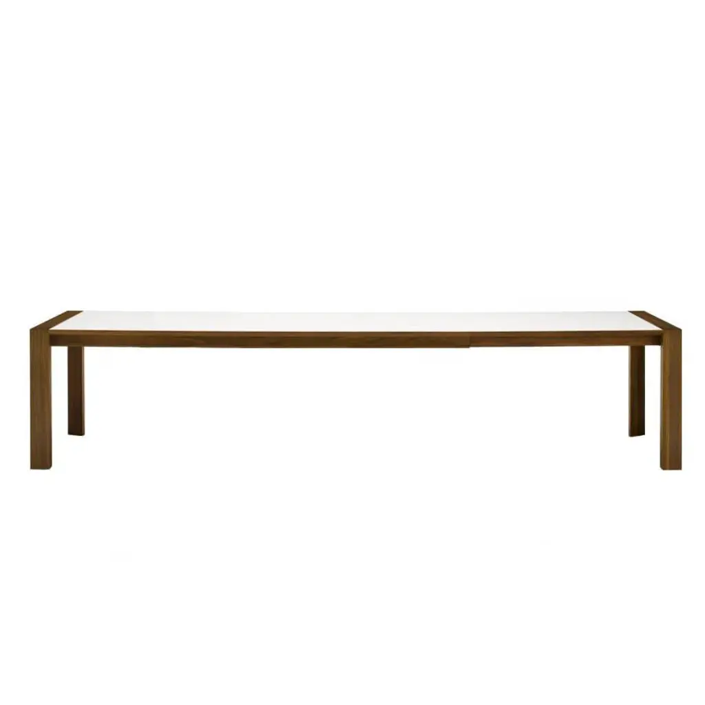 GM7700 Table Designer: Nissen & Gehl MDD Manufactured by: Naver Collection Dimensions (in): see Options below Table with white Corian on the table top. The legs are available in two variants, either with white Corian on top and the side of the legs, or in solid wood. The table has 1 Butterfly-extension measuring 100 cm/39.4 in, which is integrated in the table. The table is available in 5 sizes. The table top thickness is 30 mm/1.2 in.