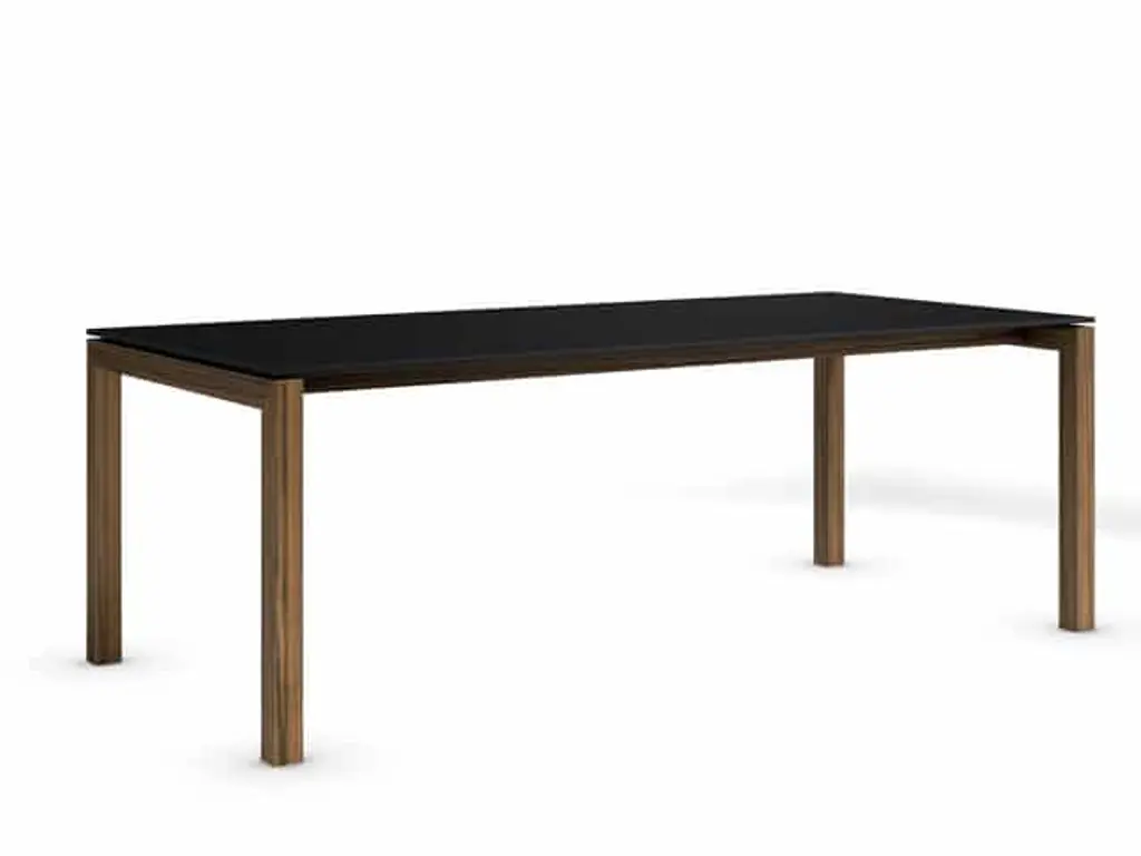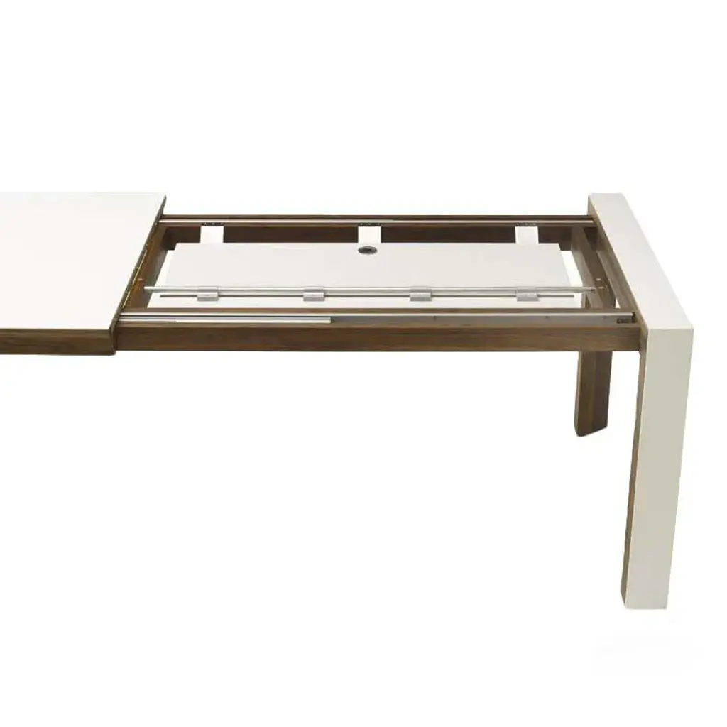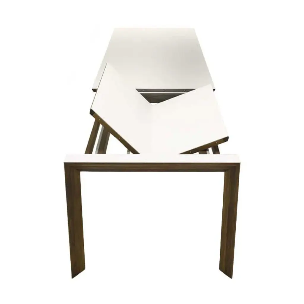 GM7700 Table Designer: Nissen & Gehl MDD Manufactured by: Naver Collection Dimensions (in): see Options below Table with white Corian on the table top. The legs are available in two variants, either with white Corian on top and the side of the legs, or in solid wood. The table has 1 Butterfly-extension measuring 100 cm/39.4 in, which is integrated in the table. The table is available in 5 sizes. The table top thickness is 30 mm/1.2 in.