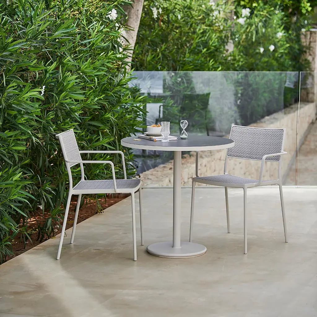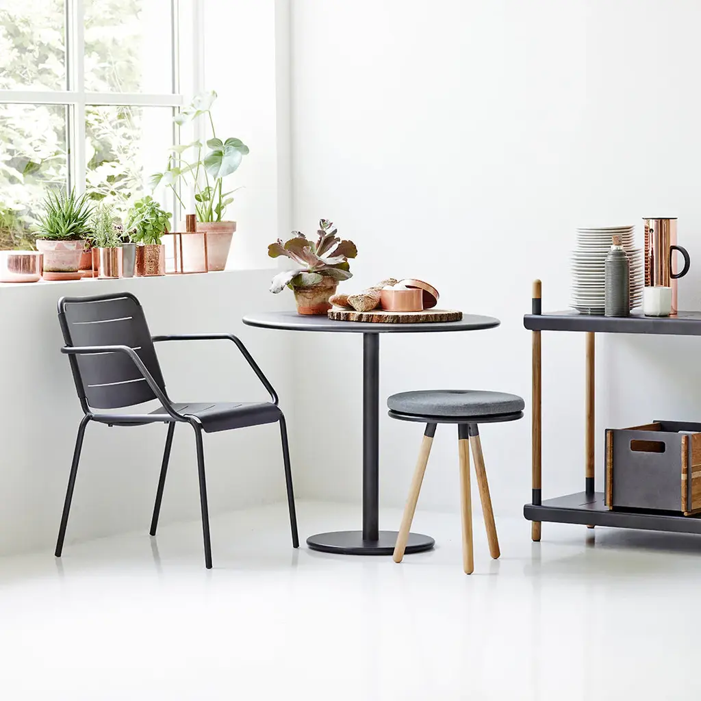 GO is a table "to go" – wherever you like. With its slim and elegant design, the table is ideal wherever a cafà © table is required. The minimalist and understated design makes the table a perfect match for any chair. GO allows you to mix and match colors and styles. The GO table is made from powder-coated, all-weather aluminium with a counter weight base, to maximize stability and strength and thereby allow use in all weather conditions. The GO table is designed by the Cane-line Design Team.