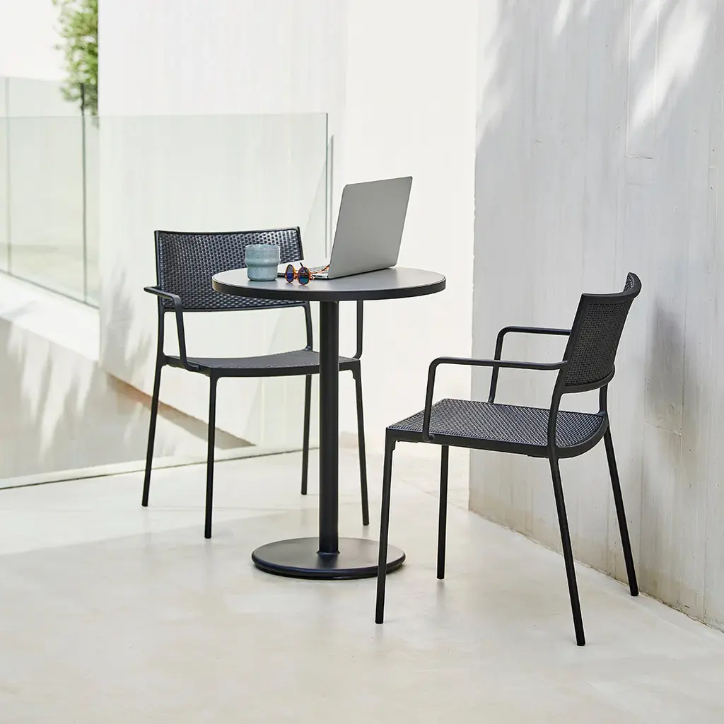 GO is a table "to go" – wherever you like. With its slim and elegant design, the table is ideal wherever a cafà © table is required. The minimalist and understated design makes the table a perfect match for any chair. GO allows you to mix and match colors and styles. The GO table is made from powder-coated, all-weather aluminium with a counter weight base, to maximize stability and strength and thereby allow use in all weather conditions. The GO table is designed by the Cane-line Design Team.