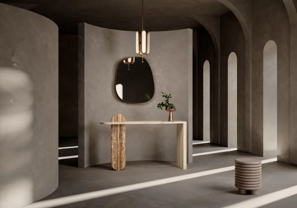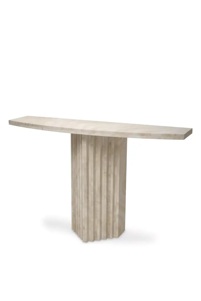 Gol. 002 marble table by Chapter 101Dimensions: H 86 x W 40 x D 160Material: marble (beige travertine, noce travertine)Effortless composition and eccentric design bring forth the Golestan Series. Evoking rich emotions of heritage and culture with each celestial piece of marble and its natural beauty, a table that draws you into a world filled with historical grandeur. Further exploring our desire to connect with both nature and our surroundings.Each piece in our Golestan Series has been carefully crafted by hand using time-honoured methods and tools, creating into works of art, each with its own unique personality and soul. We understand that each space is unique with different style. We offer bespoke marbles from Italy, Spain, France, Turkey, as many alternatives to fulfil your needs and design your space.Chapter 101 is a never-ending story – of taste, of style, of texture and imagination. It is the story of a young Iranian dreamer, who observed the world and lost herself in fascination at what she saw: the geometry of nature, of architecture, of people and their feelings. As years past, she travelled the region and beyond, discovering new stories and shapes – sketching, interpreting and layering. Today, Chapter 101 is the interpretation of life through bespoke interior design. Each piece tells its own narrative and expresses unique emotional patterns. Rooted in Middle Eastern culture, it is structural and multi-dimensional. Ultimately, our design is here to add stories to your life – to shape your space, stoke dinner party.