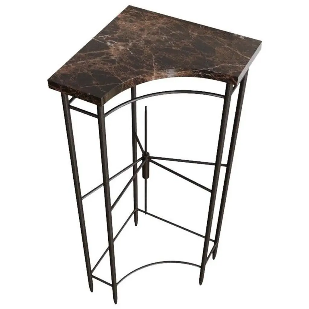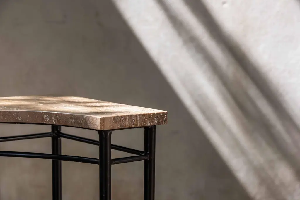 Gol. 004 marble corner table by Chapter StudioDimensions: H 110 x W 42 x D 42Material: marble (dark emperador)Effortless composition and eccentric design bring forth the Golestan Series. Evoking rich emotions of heritage and culture with each celestial piece of marble and its natural beauty, a table that draws you into a world filled with historical grandeur. Further exploring our desire to connect with both nature and our surroundings.Each piece in our Golestan Series has been carefully crafted by hand using time-honoured methods and tools, creating into works of art, each with its own unique personality and soul. We understand that each space is unique with different style. We offer bespoke marbles from Italy, Spain, France, Turkey, as many alternatives to fulfil your needs and design your space.Chapter 101 is a never-ending story – of taste, of style, of texture and imagination. It is the story of a young Iranian dreamer, who observed the world and lost herself in fascination at what she saw: the geometry of nature, of architecture, of people and their feelings. As years past, she travelled the region and beyond, discovering new stories and shapes – sketching, interpreting and layering. Today, Chapter 101 is the interpretation of life through bespoke interior design. Each piece tells its own narrative and expresses unique emotional patterns. Rooted in Middle Eastern culture, it is structural and multi-dimensional. Ultimately, our design is here to add stories to your life – to shape your space, stoke dinner party.