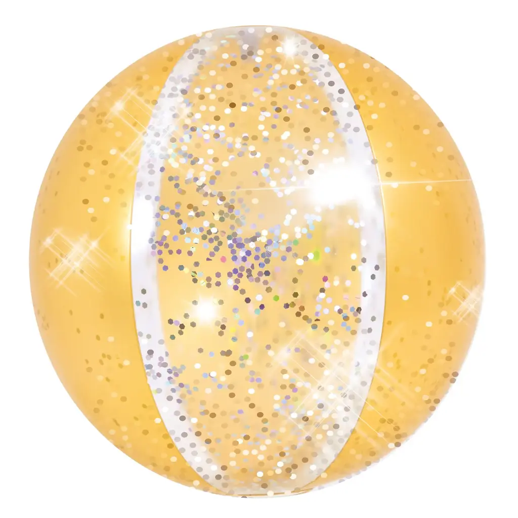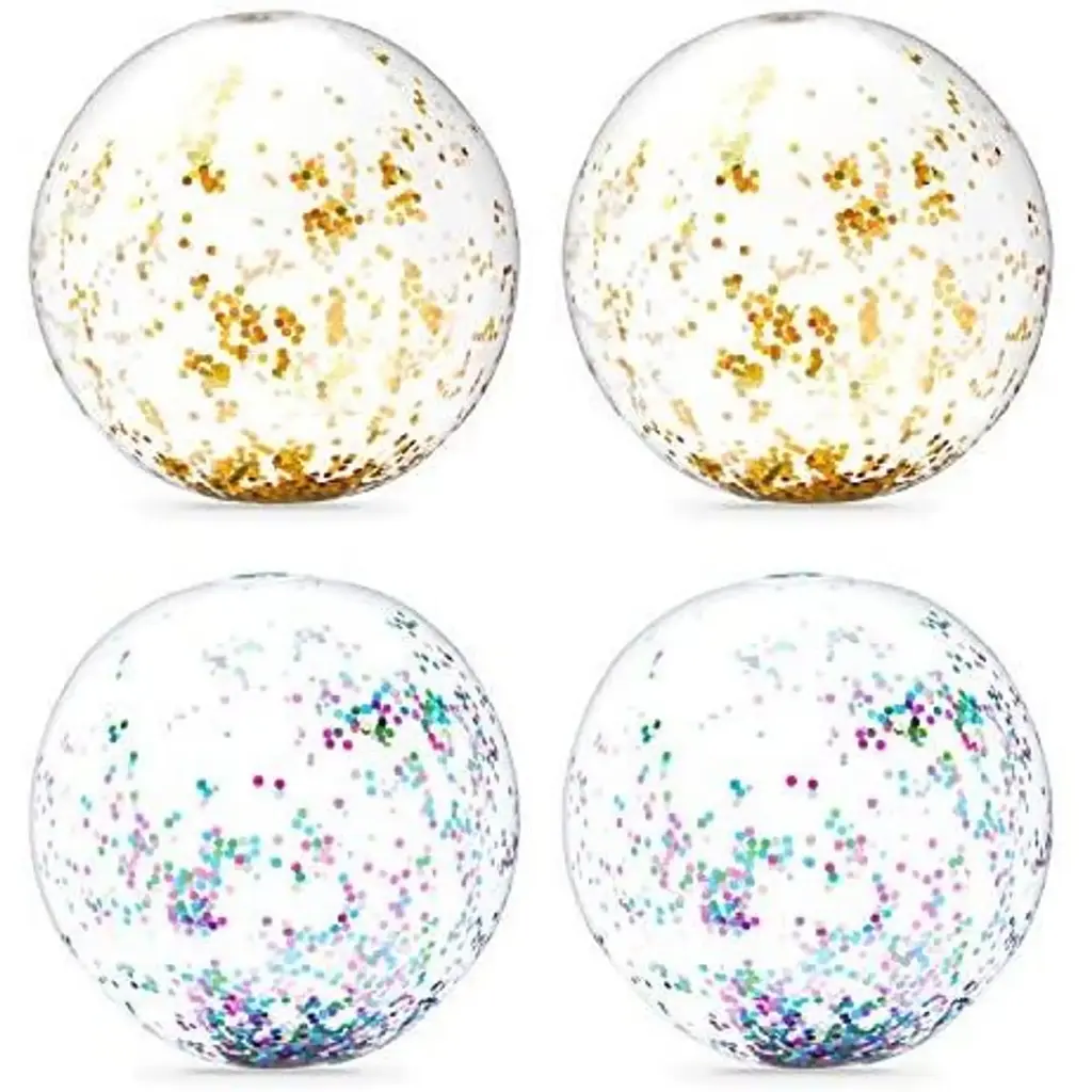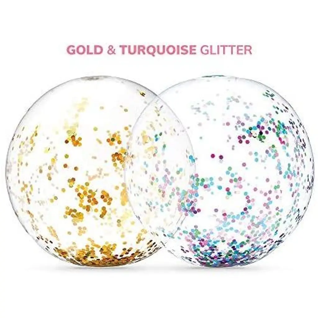 Gold And Turquoise Inflatable Glitter Beach Balls (20 Inches, 4 Pack) - Gold