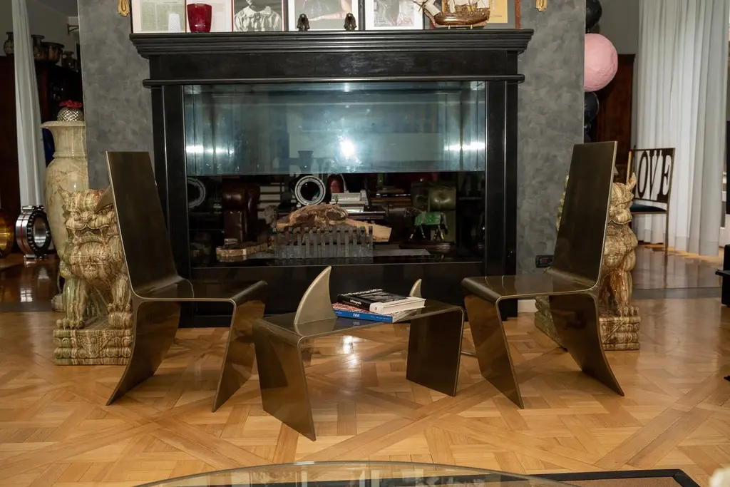 Gold Shark Coffee Table by Giulia Maria LigrestiDimensions: D 79 x W 35 x H 38 cm.Materials: Iron.This all-gold iron coffee table exudes elegance and luxury. The entire table, including the shark fin accents, is crafted from gold-colored iron. The golden hue adds a touch of opulence and sophistication to the design. This coffee table becomes a striking centerpiece in any space, creating a sense of glamour and style. The incorporation of the shark fin accents adds a unique and playful element, further enhancing the table's visual appeal.Giulia Ligresti graduated with honors in Business Administration from Bocconi University. During her Business Administration courses at Queen Mary College in London and the numerous managerial roles she held, her more logical and pragmatic side prevailed; today, she lays bare the creativity that has always accompanied her and that has been enriched thanks to the important humanitarian experiences conducted over the years in India, Afghanistan, and Gaza.Giulia Ligresti presented her LOVE collection in collaboration with Studio Silvia Porro Architects at the Salone del Mobile 2018: elegant chairs handcrafted in gold-plated iron and precious velvets. Giulia followed a wider collection of chairs, consoles, sofas, tables, and sculptures in iron, copper, bronze, and aluminum, all inspired by love. In 2020 Ligresti held her first solo exhibition at the Galleria Glauco Cavaciuti in Milan.