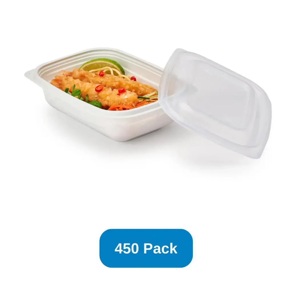The 16 oz Clear Clamshell Container, made in the USA, offers a durable, crush-resistant, and stackable design. Constructed from plant-based Polylactic Acid (PLA), a resin derived from corn starch, this BPI-certified compostable container provides an eco-friendly packaging solution. Featuring a tight resealable lid and crystal-clear visibility, it's suitable for refrigerated and frozen storage of various foods. Manufactured with good-natured TFF02000 bio-based material per ASTM D6866, and BPI and CMA-certified compostable per ASTM D6400, this container will compost within 180 days in a commercial composting facility, where accepted. Note: PLA begins to melt at 105° F; store out of direct sunlight.