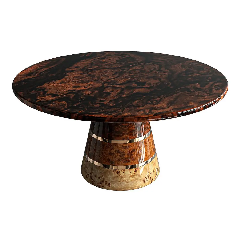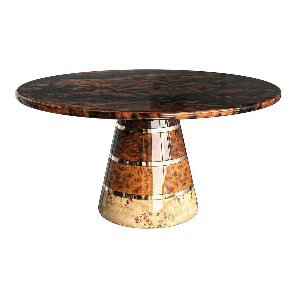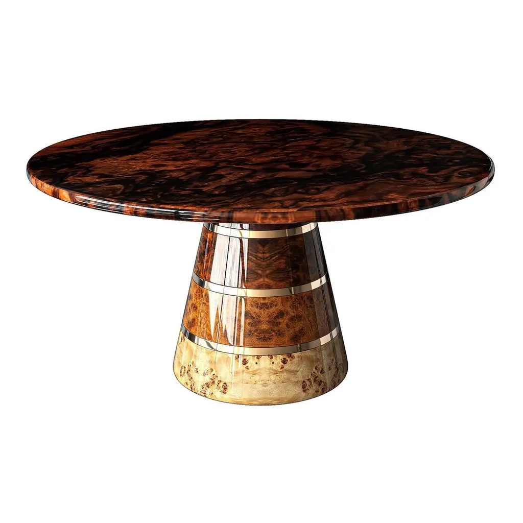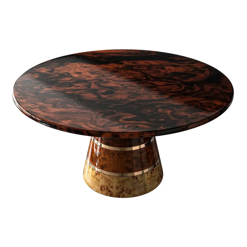 "Goodwood" Round Table With Unique Woods And Bronze Details, Handmade, Istanbul