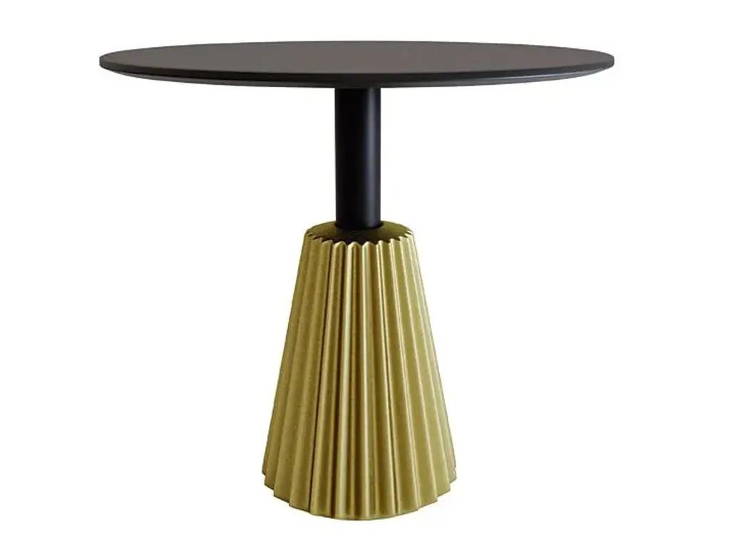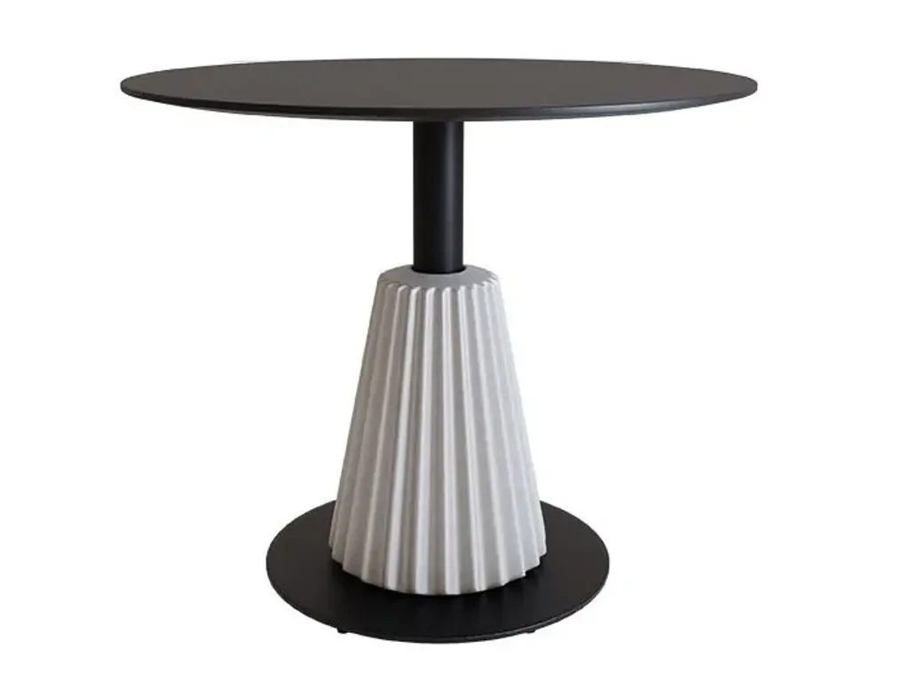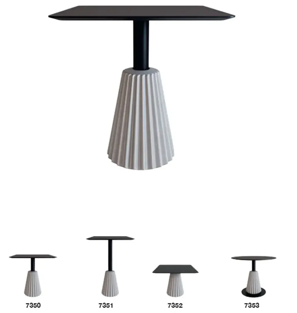 Natural concrete table base and powdercoated metal stand, for indoor or outdoor. With addition of the a metal base it can support large tops. Several height available.