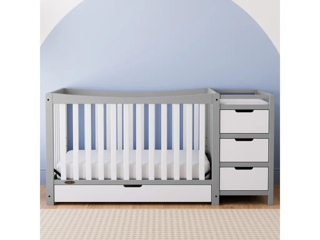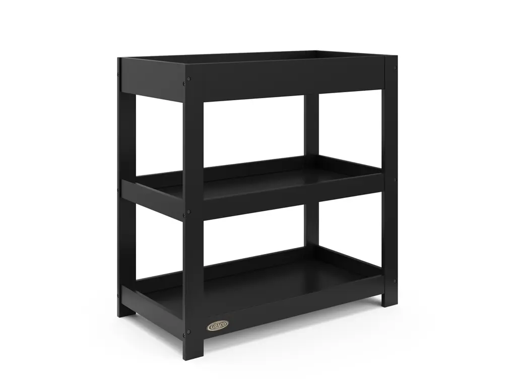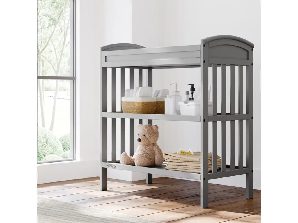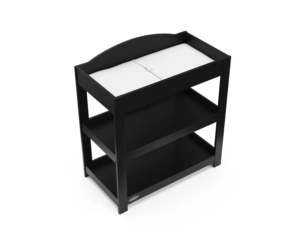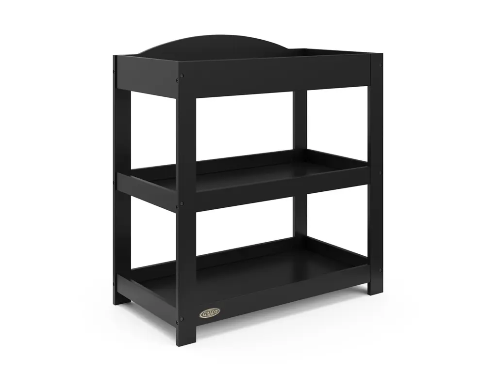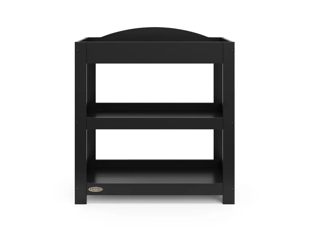 Customize your nursery by choosing between a classic or modern design — introducing the Graco Customizable Changing Table with Bonus Water-Resistant Changing Pad. While the Graco Customizable Changing Table is designed to match perfectly with any Graco crib, its easy-to-match design makes the Graco Customizable Changing Table easy to pair with any brand or style of crib. With its ability to be assembled with either a modern, flat headboard or classic, arched headboard, the Graco Customizable Changing Table with Bonus Water-Resistant Changing Pad features 2 open storage shelves to store your nursery and changing essentials. Also, the changing table includes a bonus water-resistant baby changing pad with safety strap. The Graco Customizable Changing Table is crafted from wood composites, laminated with a durable, easy-to-clean melamine coated surface, and its applied finish has been tested to meet or exceed the applicable ASTM and CPSIA safety standards. Also, like all Graco changing tables, the Graco Customizable Changing Table is JPMA Certified — meaning it’s been expert tested to meet or exceed all applicable category voluntary and mandatory safety standards. Graco is the proud recipient of the Parent Tested Parent Approved (PTPA) Seal of Approval for nursery and children’s bedroom furniture, and the 2022 Women's Choice Award for 9 out of 10 Recommended Baby & Kids Furniture. Backed by a 1-year limited manufacturer’s warranty. Assembly required.