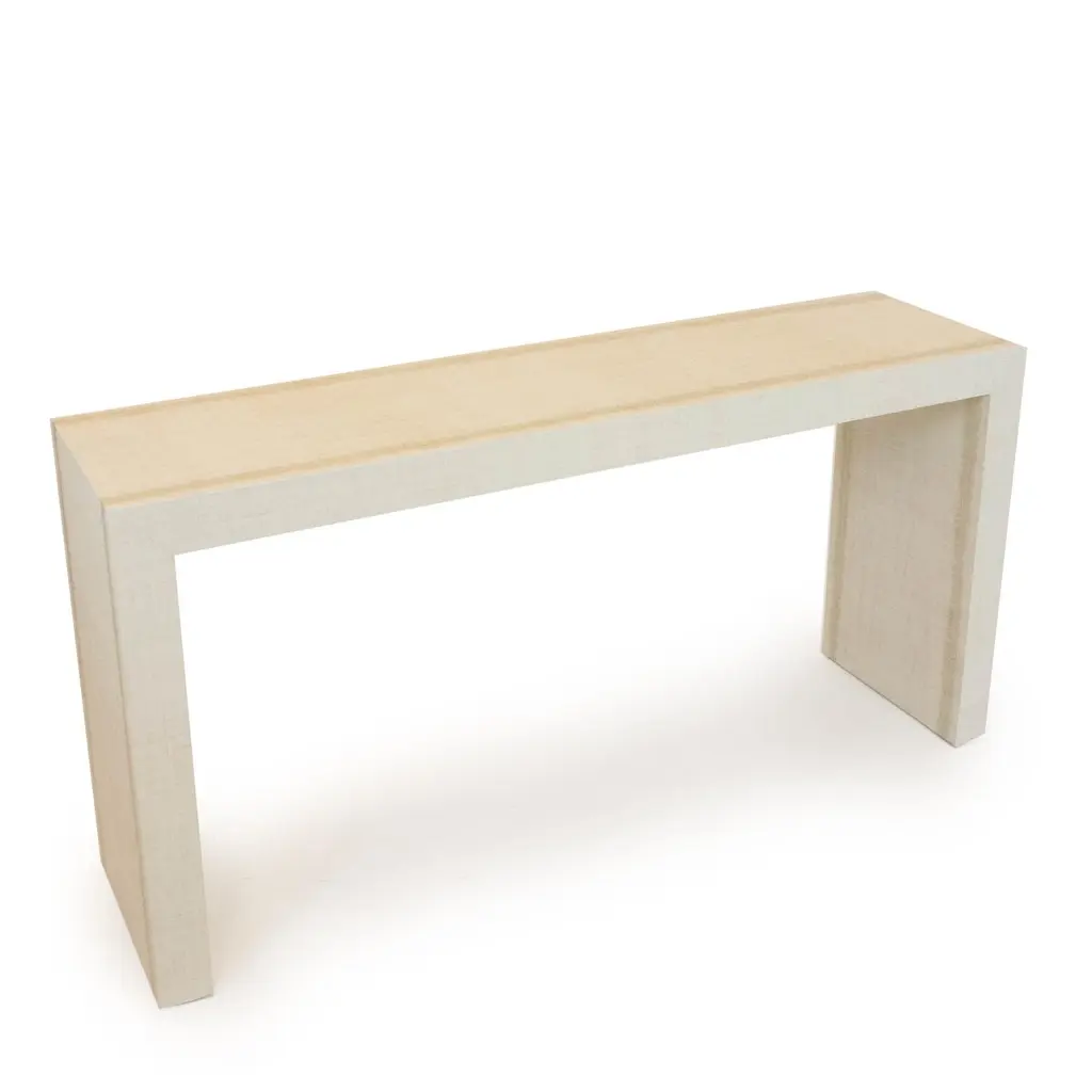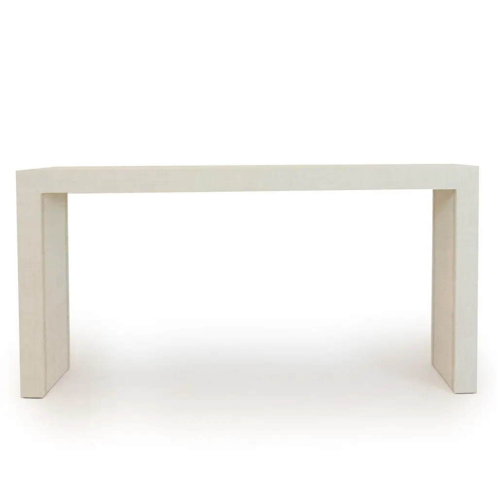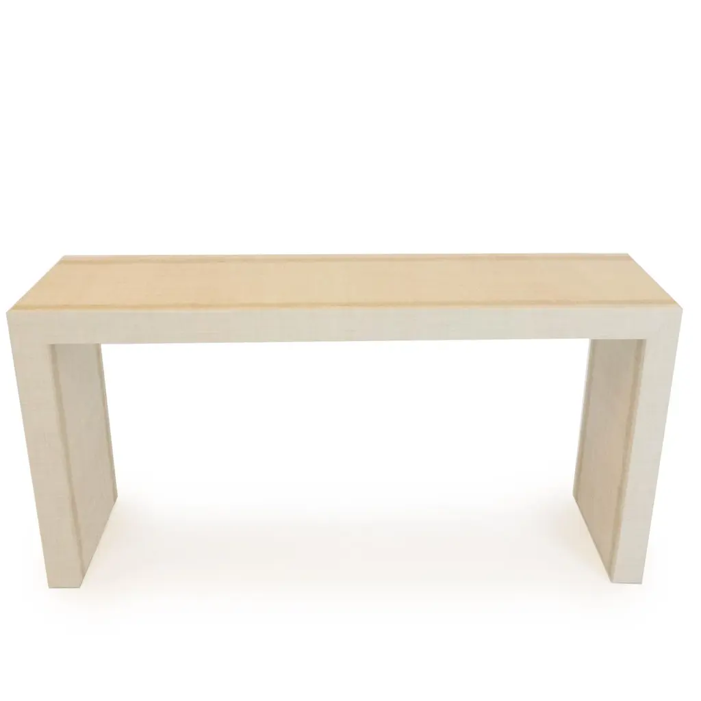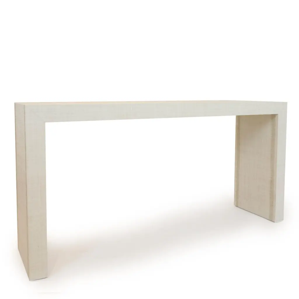 Our Classic Waterfall table has been built out of hardwood and meticulously hand-wrapped in a textured vinyl. Size is customizable. Customization may effect price. Allow 8 weeks production time. Measurements: 60" W x 16" D x 33" H. item TH-03