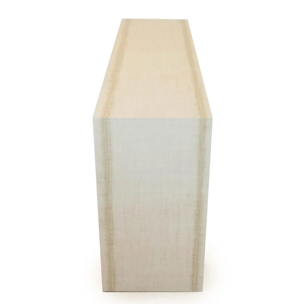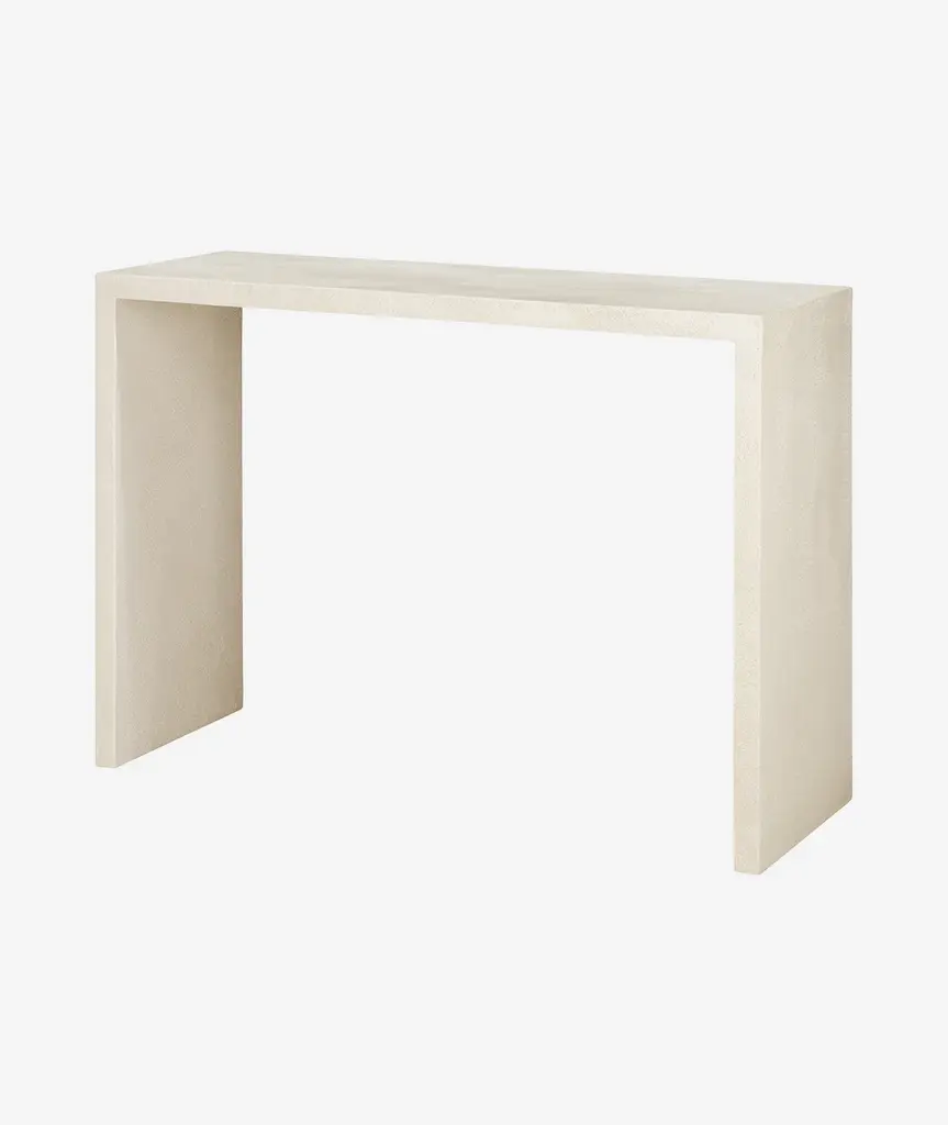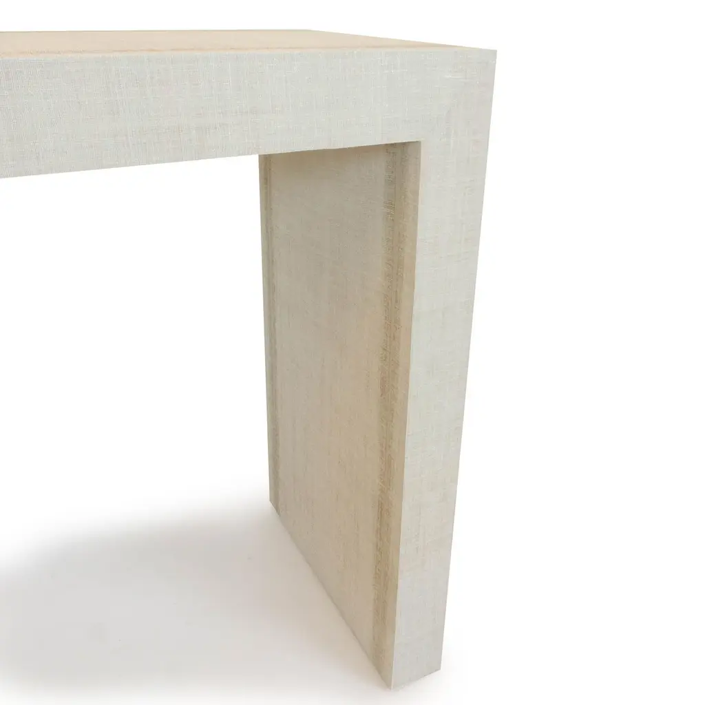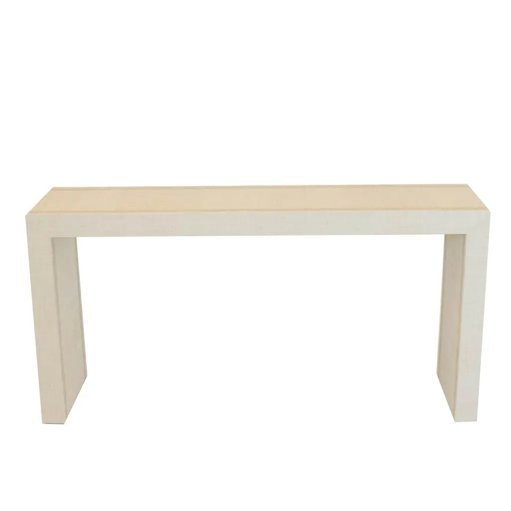 Our Classic Waterfall table has been built out of hardwood and meticulously hand-wrapped in a textured vinyl. Size is customizable. Customization may effect price. Allow 8 weeks production time. Measurements: 60" W x 16" D x 33" H. item TH-03