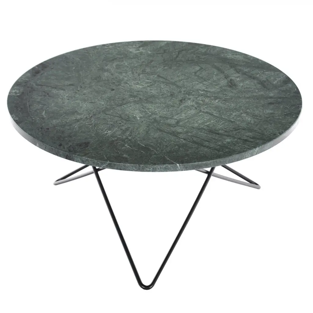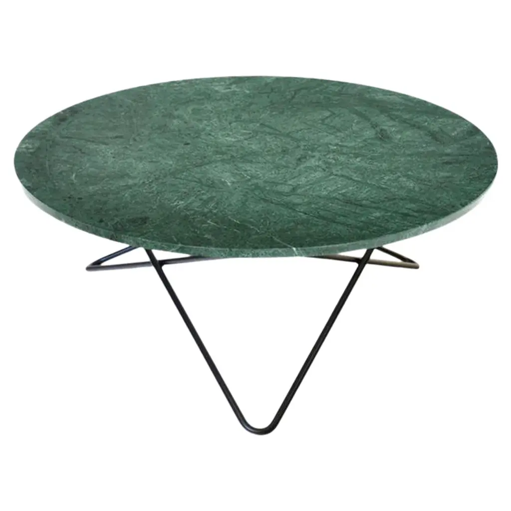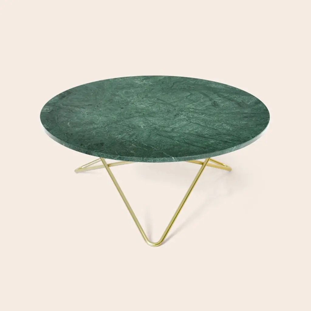 Green Indio marble and brass large O table by OxDenmarqDimensions: D 100 x H 40 cmMaterials: Brass, green Indio marbleAvailable in other size. Different top and frame options availableOX DENMARQ is a Danish design brand aspiring to make beautiful handmade furniture, accessories and lighting in natural high-quality materials in fair prices. " When we set out back in 2003, we were primarily working with vegetable-tanned saddle leather thus the name OX was a tribute to our unique leather and the animal providing it.The other half of our name, DENMARQ, is chosen to emphasize that we are a Danish design brand based on the Danish design tradition and that most of our furniture is produced in Denmark. However, DENMARQ not only refers to our home country, but also to the co-founder and designer - DENnis MARQuart.Before finishing his design studies at the Copenhagen Design University, Dennis Marquart did a Blacksmith education. This background is extremely useful when developing and designing products."OX DENMARQ handmade products will only get more beautiful as time passes and natural patina sets in.Many OX products are shaped around marble or vegetable-tanned saddle leather. Stone and leather are materials that will, and should, get marks over time. But they will also age with a very special beauty. When you learn to appreciate the beauty of maturity and of time passing, you have learned to appreciate patina the way it should be appreciated.