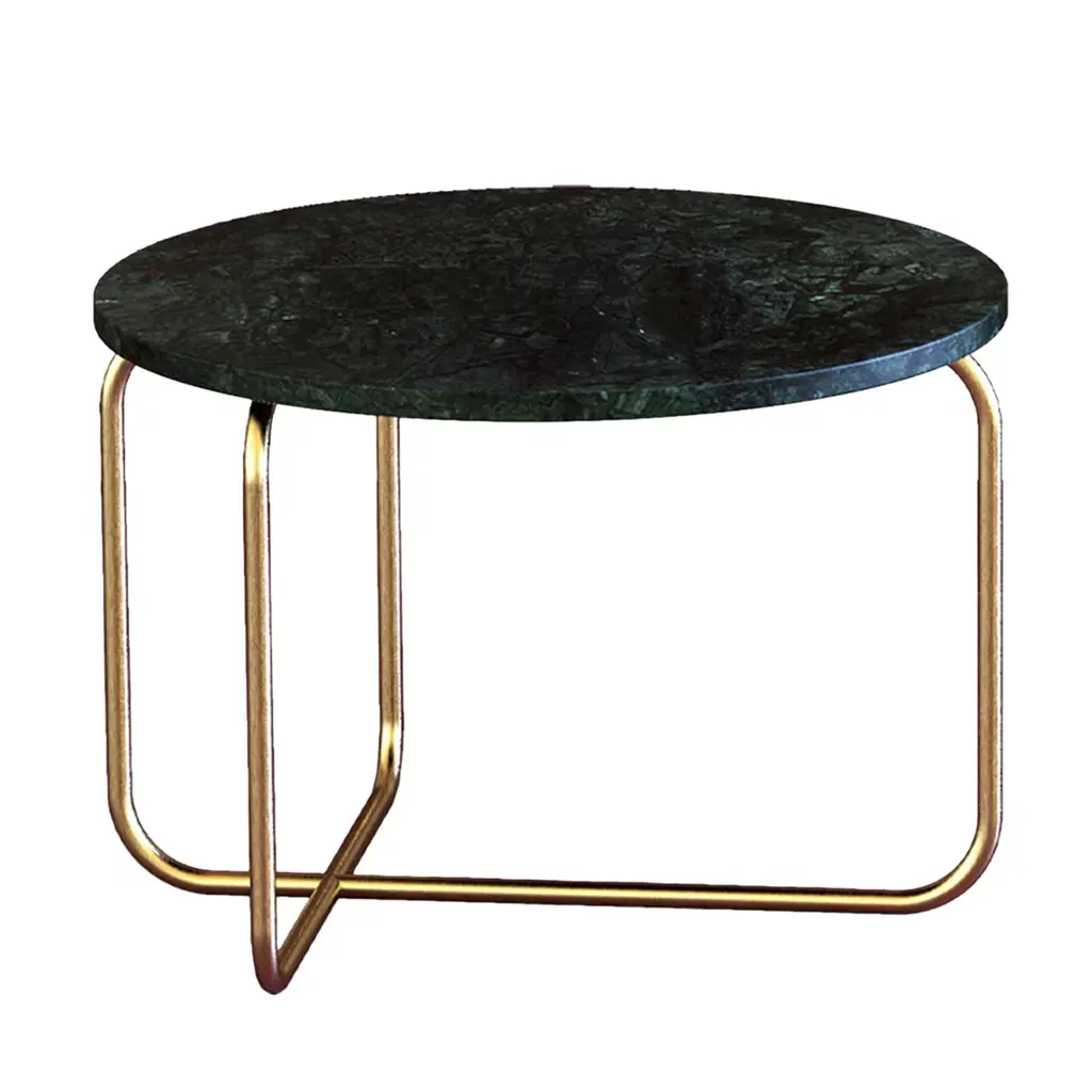 Green Indio Marble and Brass Tall Mini O Table by OxDenmarqDimensions: D 50 x H 50 cmMaterials: Brass, Green Indio MarbleAlso Available: Different top and frame options available,OX DENMARQ is a Danish design brand aspiring to make beautiful handmade furniture, accessories and lighting in natural high-quality materials in fair prices. " When we set out back in 2003, we were primarily working with vegetable-tanned saddle leather thus the name OX was a tribute to our unique leather and the animal providing it.The other half of our name, DENMARQ, is chosen to emphasize that we are a Danish design brand based on the Danish design tradition and that most of our furniture is produced in Denmark. However, DENMARQ not only refers to our home country, but also to the co-founder and designer - DENnis MARQuart.Before finishing his design studies at the Copenhagen Design University, Dennis Marquart did a Blacksmith education. This background is extremely useful when developing and designing products."OX DENMARQ handmade products will only get more beautiful as time passes and natural patina sets in.Many OX products are shaped around marble or vegetable-tanned saddle leather. Stone and leather are materials that will, and should, get marks over time. But they will also age with a very special beauty. When you learn to appreciate the beauty of maturity and of time passing, you have learned to appreciate patina the way it should be appreciated.