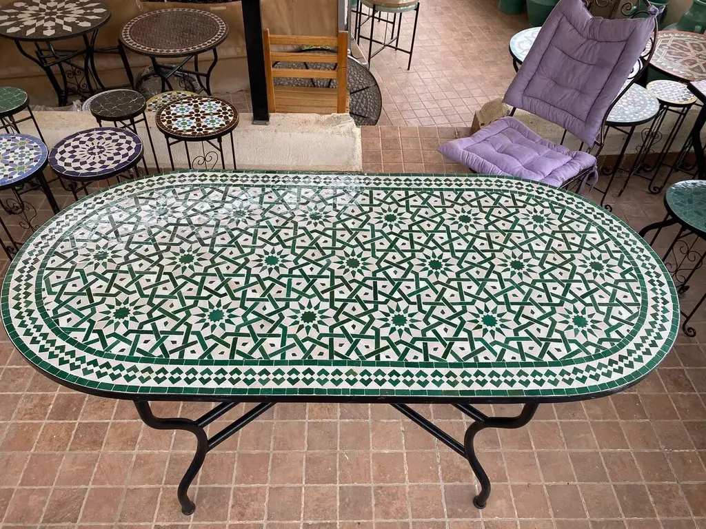 Green Oval Table Moroccan Mosaic Art Work