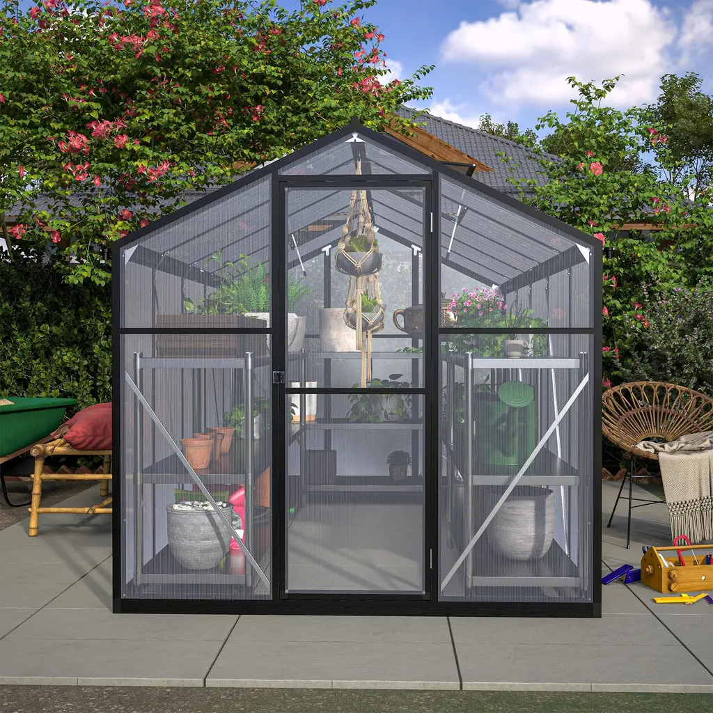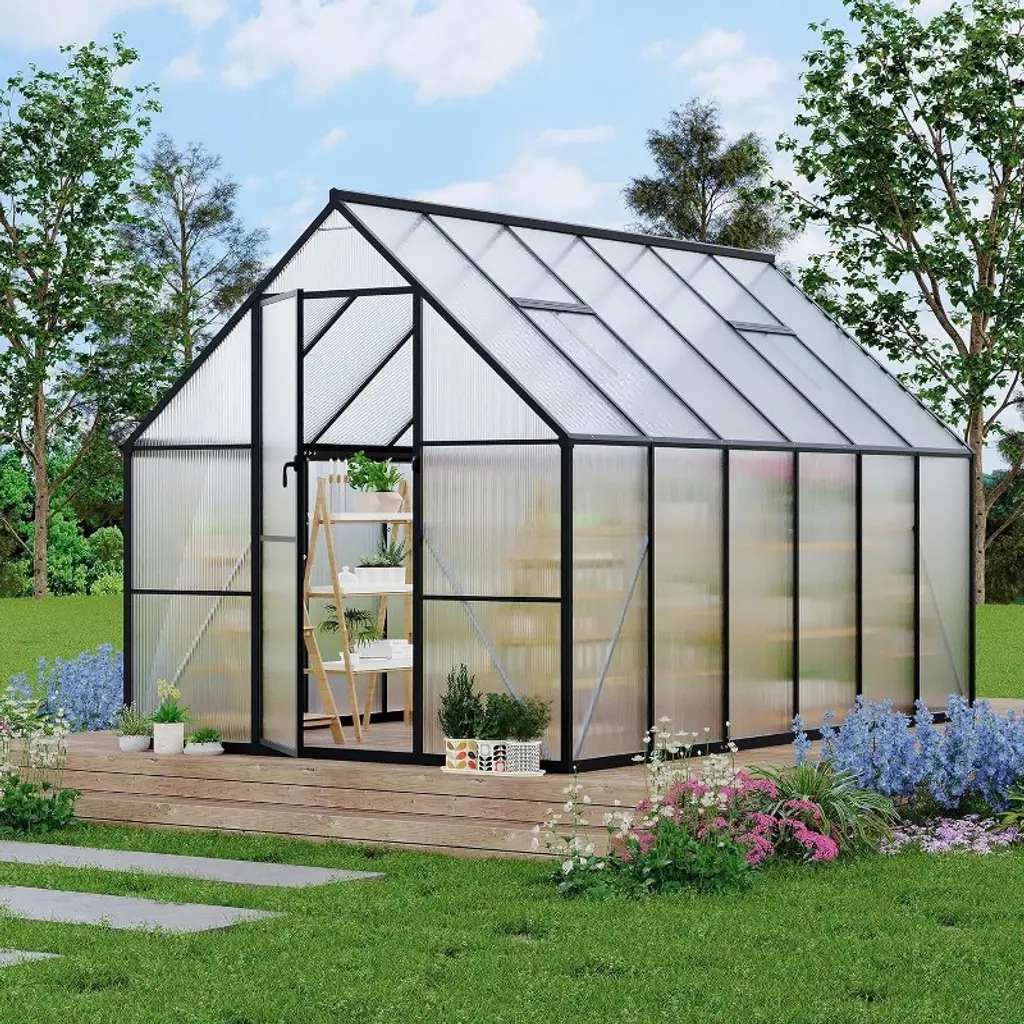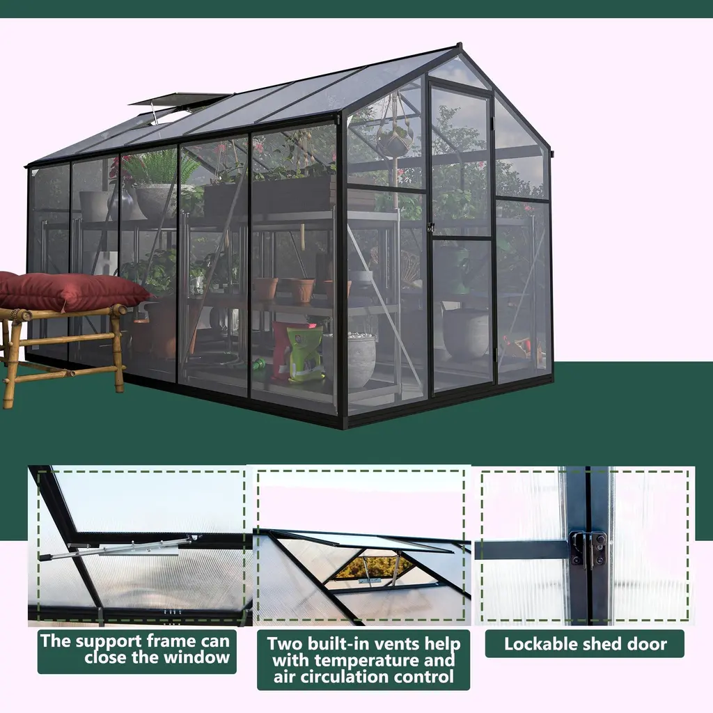 Greenhouse With Ventilation & Drainage System, Temperature-Regulating Windows For Growing Vegetables, Flowers - 6'×10'