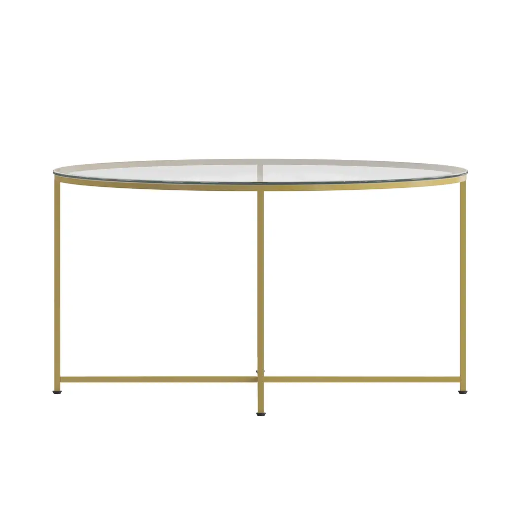 Lend your home or office sitting area a sophisticated, polished look with this round glass coffee table with metal legs. This table combines a glass top with straight legs to provide a contemporary look that's sure to tie any trendy room's presentation together. Not only does its ample surface area serve as a convenient space for holding belongings, it's also great for displaying magazines, newspapers, and brochures. Plus, the glass offers a distinct, upscale look, and is tempered for superior strength to ensure it won't break even after daily use.