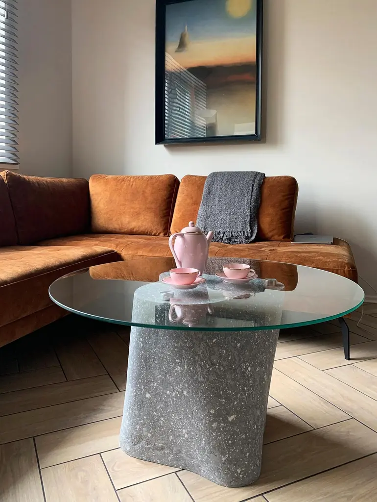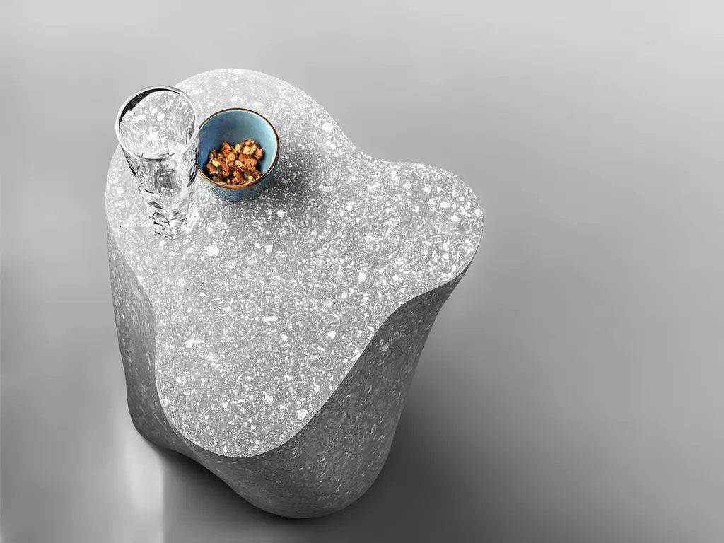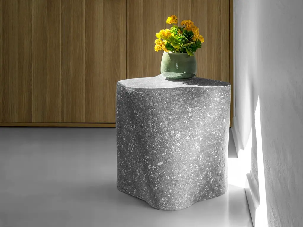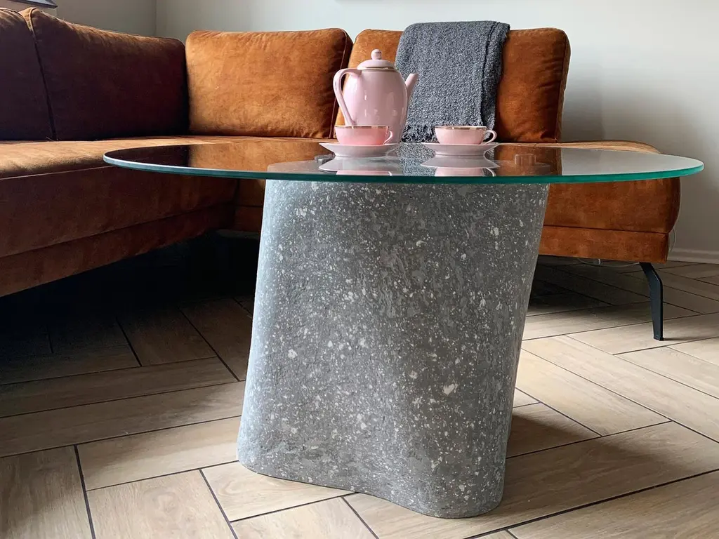Grey Coffee Table by KasanaiDimensions: D 45 x W 42 x H 43 cm.Materials: Concrete, wood, recycled paper, glue, paint.10 kg.Crafted with an eco-friendly mixture of cement, recycled paper, glue, and paint, this table undergoes meticulous experimentation to achieve a material closely resembling wood in its properties. The result is a natural texture and strength that ensures durability, setting it apart as a unique and sustainable piece.One remarkable attribute of this material is its slight elasticity. Unlike rigid materials that may be prone to splitting or crumbling under pressure, this table material exhibits a flexible nature, providing a level of resilience that enhances its longevity.Donatas ŽukauskasHello, my name is Donatas Žukauskas, I am an interior designer. I have graduated Vilnius Academy of Fine Arts and for more then 15 years I have been designing the interiors. Since I can remember myself I have always been interested in the art and this is the reason I have always tried to decorate interiors with art works. I strongly believe, a perfect interior cannot be without art!This concept used to get difficulties because could not find necessary objects for interior like stylish tables, lamps, lanterns, vases, sculptures. This gave an idea to create some arts by myself. Exceptional hand-made details for the home, cafe, and hotel spaces provide expressiveness and manners.My works are exposed in different countries of the world. Recently 50 lanterns went to Sheraton’s restaurant at Doha, Qatar.