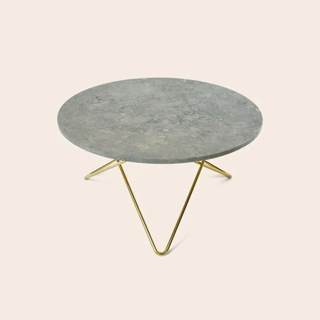 Grey Marble and Brass "O" Table by OxDenmarqDimensions: D 80 x H 40 cmMaterials: Brass, Grey MarbleAvailable in other size. Different top and frame options available,OX DENMARQ is a Danish design brand aspiring to make beautiful handmade furniture, accessories and lighting in natural high-quality materials in fair prices. " When we set out back in 2003, we were primarily working with vegetable-tanned saddle leather thus the name OX was a tribute to our unique leather and the animal providing it.The other half of our name, DENMARQ, is chosen to emphasize that we are a Danish design brand based on the Danish design tradition and that most of our furniture is produced in Denmark. However, DENMARQ not only refers to our home country, but also to the co-founder and designer - DENnis MARQuart.Before finishing his design studies at the Copenhagen Design University, Dennis Marquart did a Blacksmith education. This background is extremely useful when developing and designing products."OX DENMARQ handmade products will only get more beautiful as time passes and natural patina sets in.Many OX products are shaped around marble or vegetable-tanned saddle leather. Stone and leather are materials that will, and should, get marks over time. But they will also age with a very special beauty. When you learn to appreciate the beauty of maturity and of time passing, you have learned to appreciate patina the way it should be appreciated.