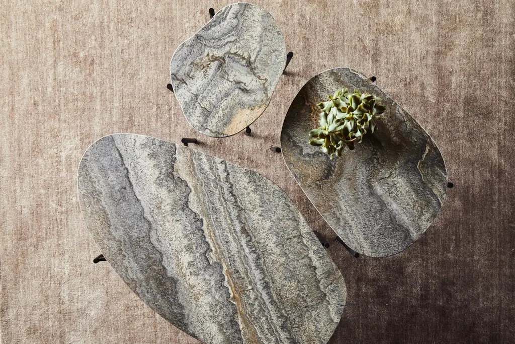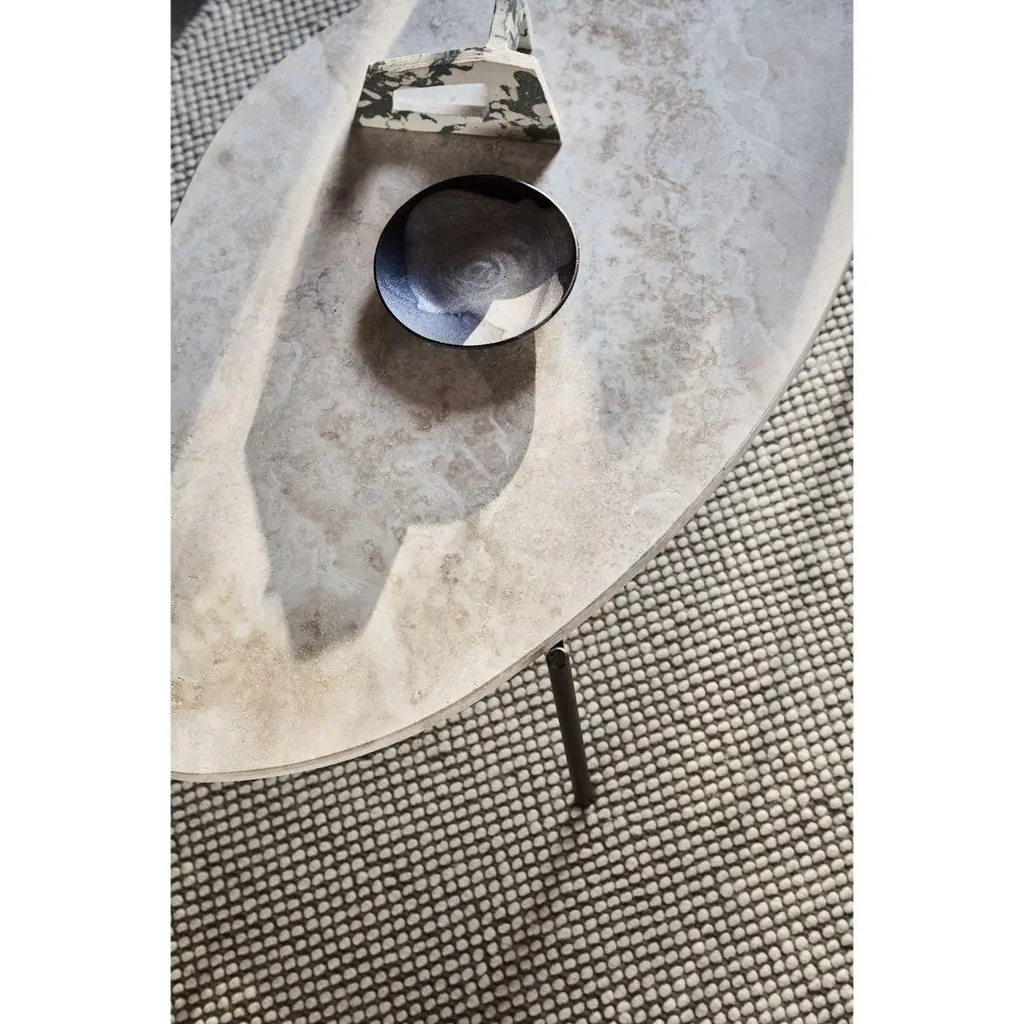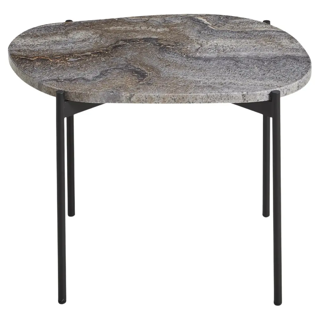 Grey Melange La Terra large occasional table by Agnes MorguetMaterials: metal, grey Melange TravertineDimensions: D 54 x W 95 x H 36 cmThe founders, Mia and Torben Koed, decided to put their 30 years of experience into a new project. It was time for a change and a new challenge. The challenge was to build an ambitious design brand from the ground up with high-quality materials and great attention to the little details. With a drive to create new originals, the WOUD collection is founded upon the idea to look ahead instead of looking back and share the love for honest design. Therefore, we are eager to discover and develop new ideas whether it being in form, function or choice of material. Agnes Morguet appears as a flourishing designer from Germany. Her background as a trained carpenter and interior architect combines craftsmanship, art and aesthetics, resulting in designs that enrich atmospheres and arouse emotions. With an aim to inspire, delight and touch people emotionally, her creations are characterised as clear, elegant and natural. Her approach to the design process is holistic, which reveals in her ability to find inspiration in everything that surrounds her.