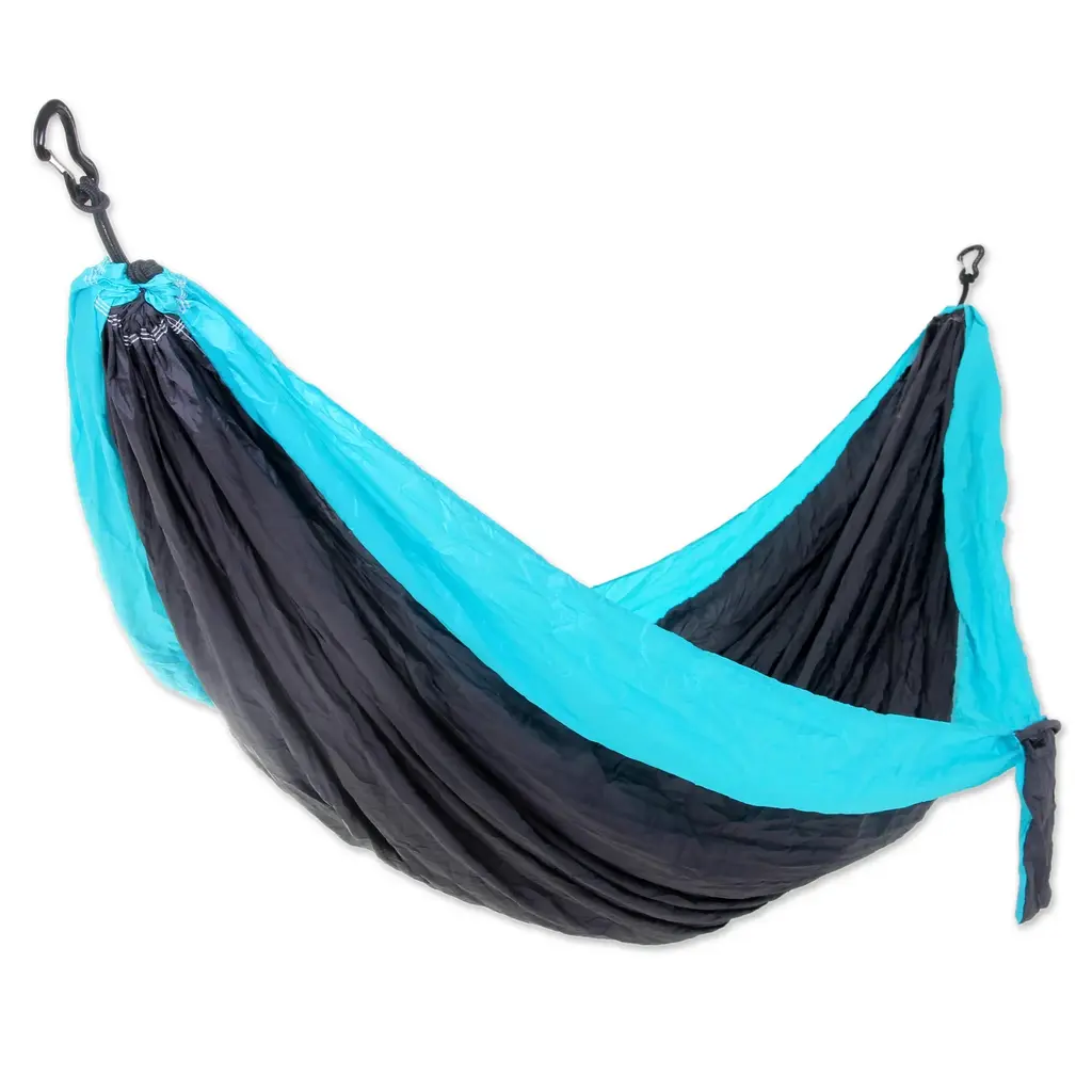 Grey Turquoise Portable Parachute Fabric Hammock (Double)- Highland Dreams