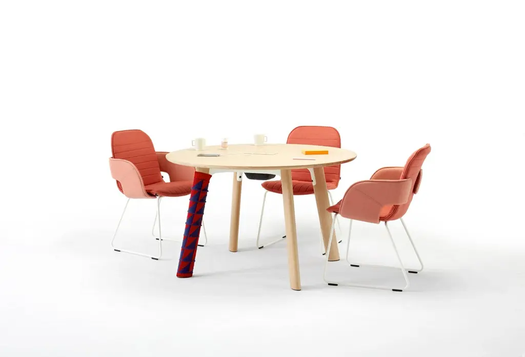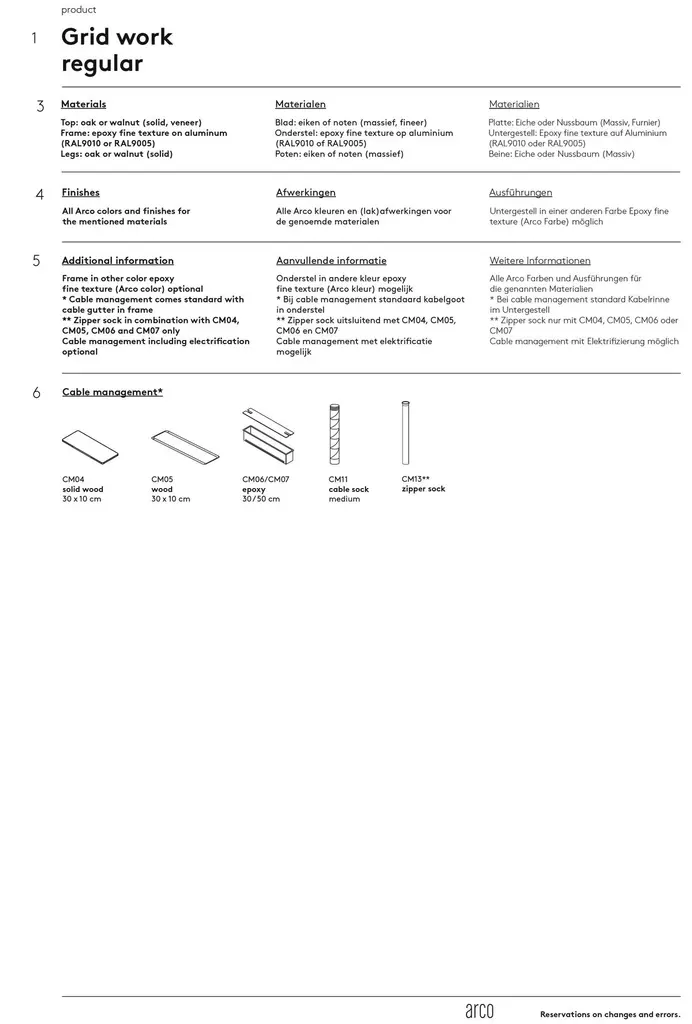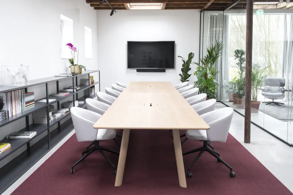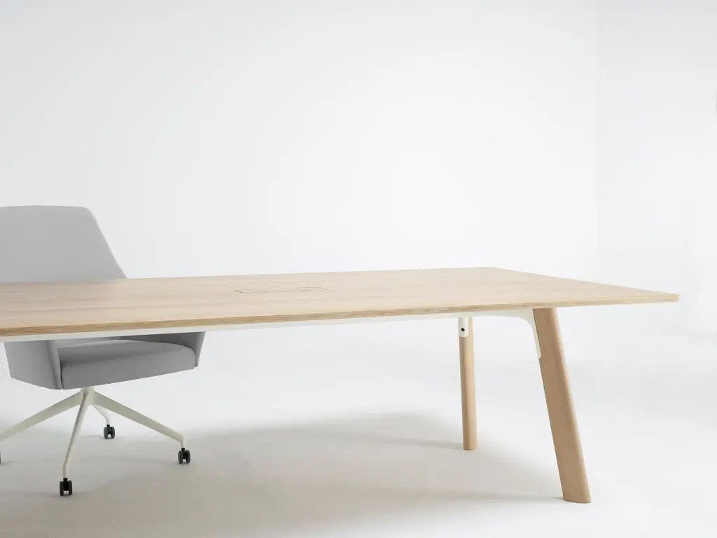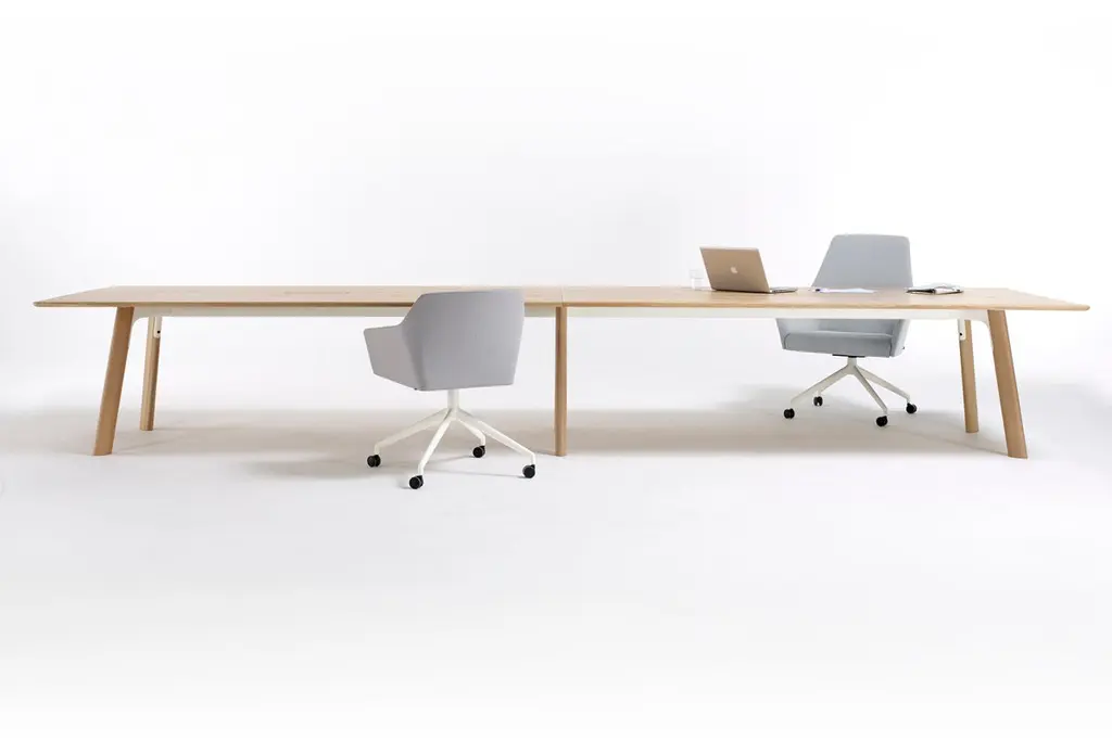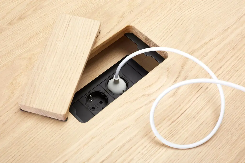 The clever modular design of the table allows for a wide variety of arrangements, be it for formal or informal meetings, landing or individual work. The Grid is ideal for dynamic work environments, such as offices or libraries. The choice of material and color gives it a natural and fresh feel.Price for solid oak and size 560 x 150 x 75cmGrid barrel connectedCable management extra.