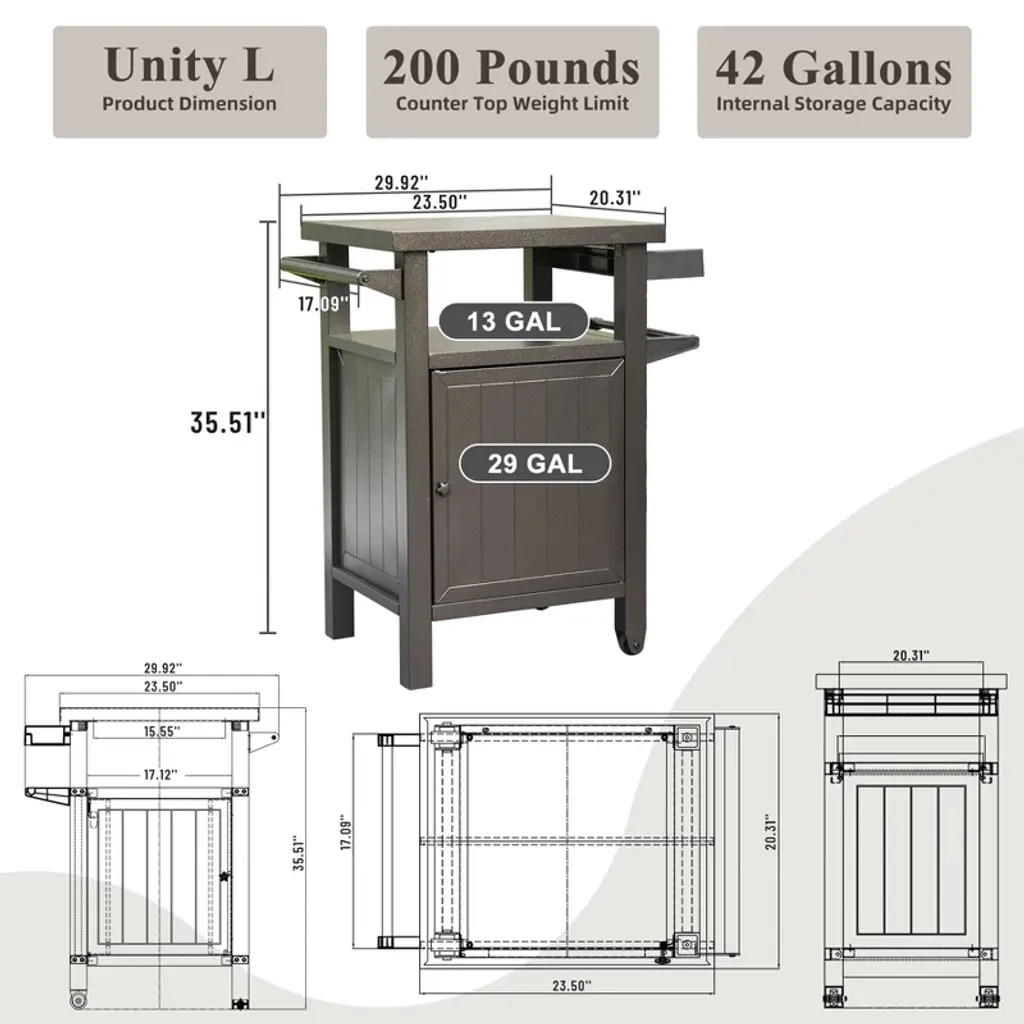Grill Carts Outdoor with Storage and Wheels, Whole Metal Portable Table and Storage Cabinet for BBQ,Deck,Patio,Backyard(Dark Grey)