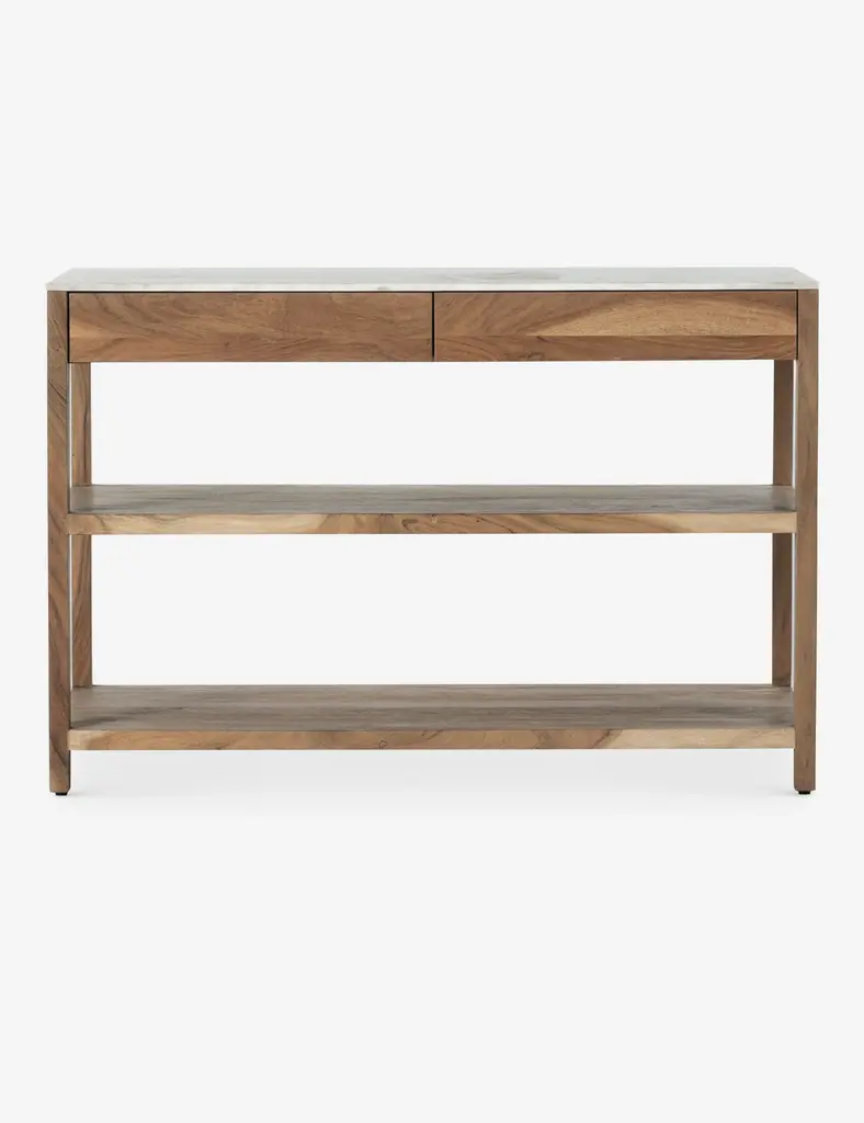 The Guapa Console Table from Surya blends sophistication and functionality to elevate any living space. Crafted in India, it features a sleek marble top paired with a durable Acacia wood base, creating a harmonious balance of elegance and sturdiness. Its clean lines and versatile design suit various décor styles, from modern to rustic. Easy to maintain with a simple wipe using a damp cloth, it’s perfect for displaying décor or storing essentials. This console table is a stylish, practical addition to any home.