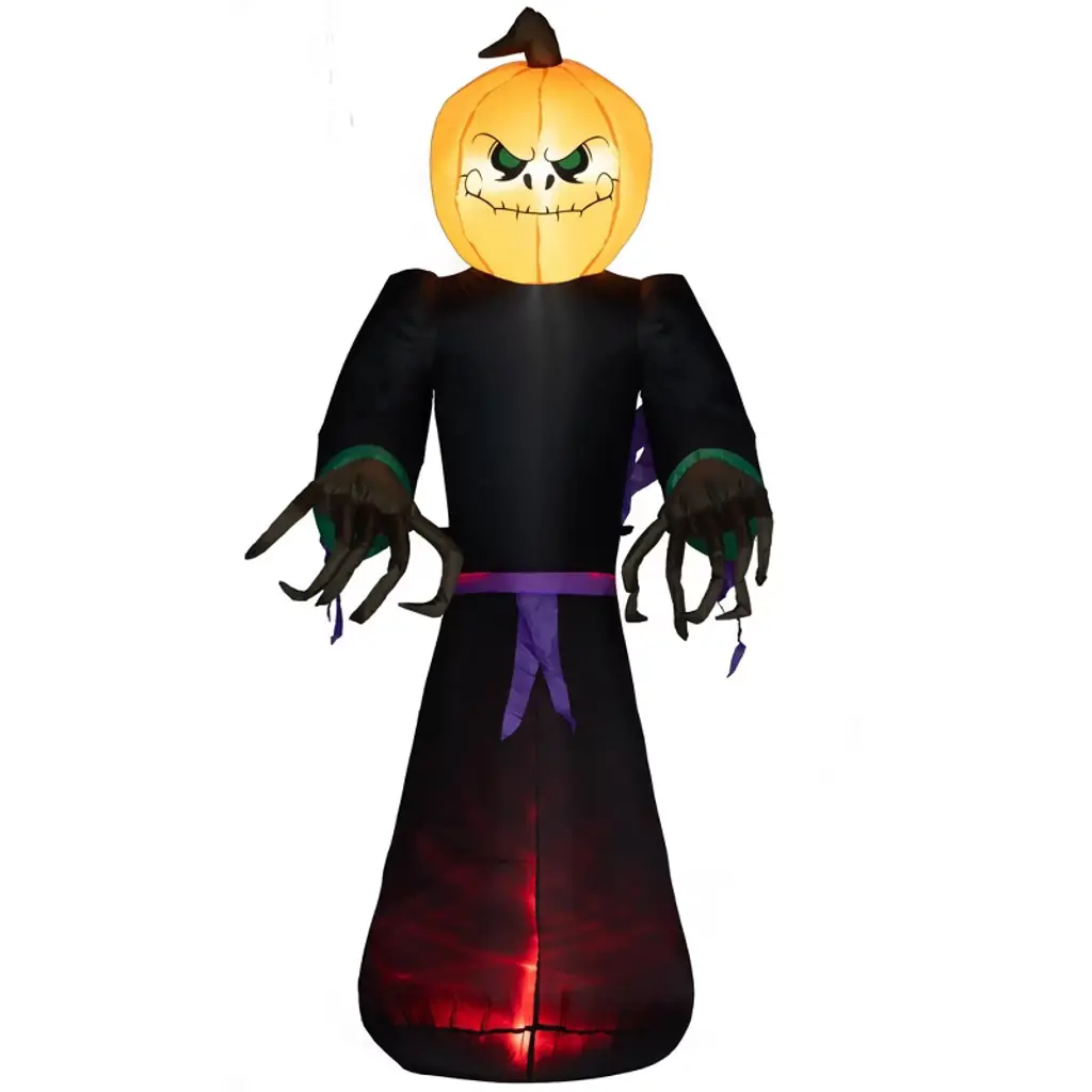 Transform your outdoor Halloween display into a spine-tingling spectacle with our Pumpkin Reaper adorned with a menacing skeleton skull. Guaranteed to captivate both you and your neighbors, this eye-catching decoration will infuse your holiday with unparalleled excitement, leaving onlookers spellbound for days on end. Equipped with built-in LEDs, it radiates a brilliant glow that accentuates every eerie detail, intensifying the hair-raising ambiance of your haunted setup.
