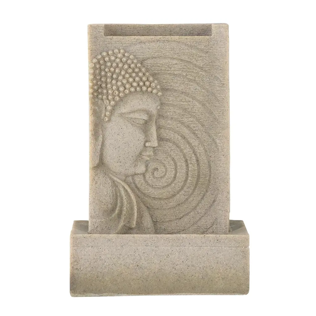Elevate your indoor ambiance with the Gulches 9" x 6.5" x 14" Indoor Buddha Water Fountain. This exquisite tabletop fountain, crafted from durable polyresin, features a serene Buddha design that brings a sense of peace and tranquility to any space. The gentle flow of water creates a soothing sound, perfect for meditation or relaxation. Its compact size makes it ideal for desks, shelves, or any tabletop, while the intricate details add a touch of elegance to your decor. Embrace the calming presence of the Gulches Buddha Water Fountain and transform your home into a serene sanctuary.