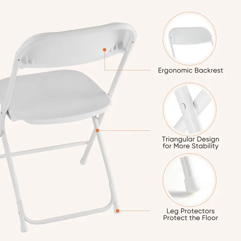 Gulches folding chair works seamlessly indoors and outdoors¡ªideal for events, offices, weddings, picnics, and restaurants. Its portable design lets you carry it easily to any occasion, while the stackable feature saves space when storing or transporting multiple chairs. Sturdy yet lightweight, it offers reliable support for daily use or gatherings, blending practicality with convenience to meet diverse seating needs.