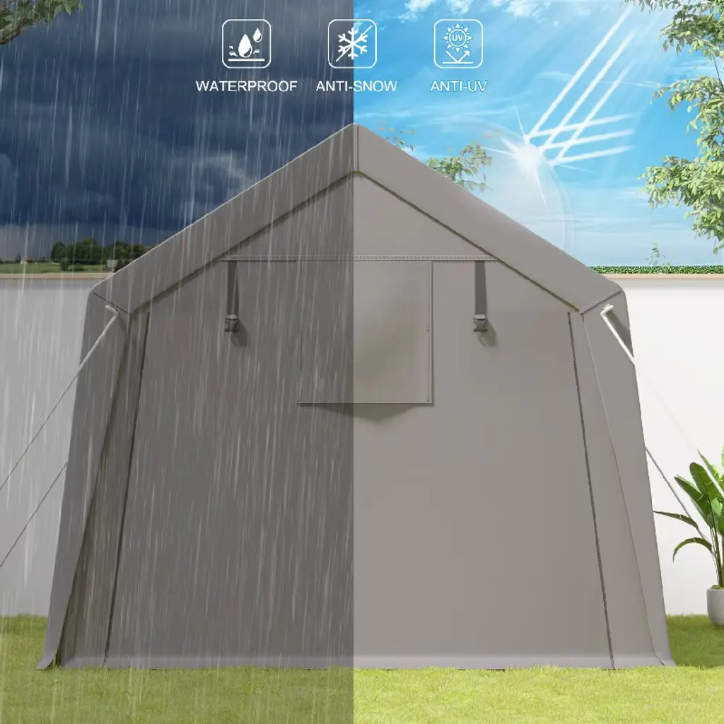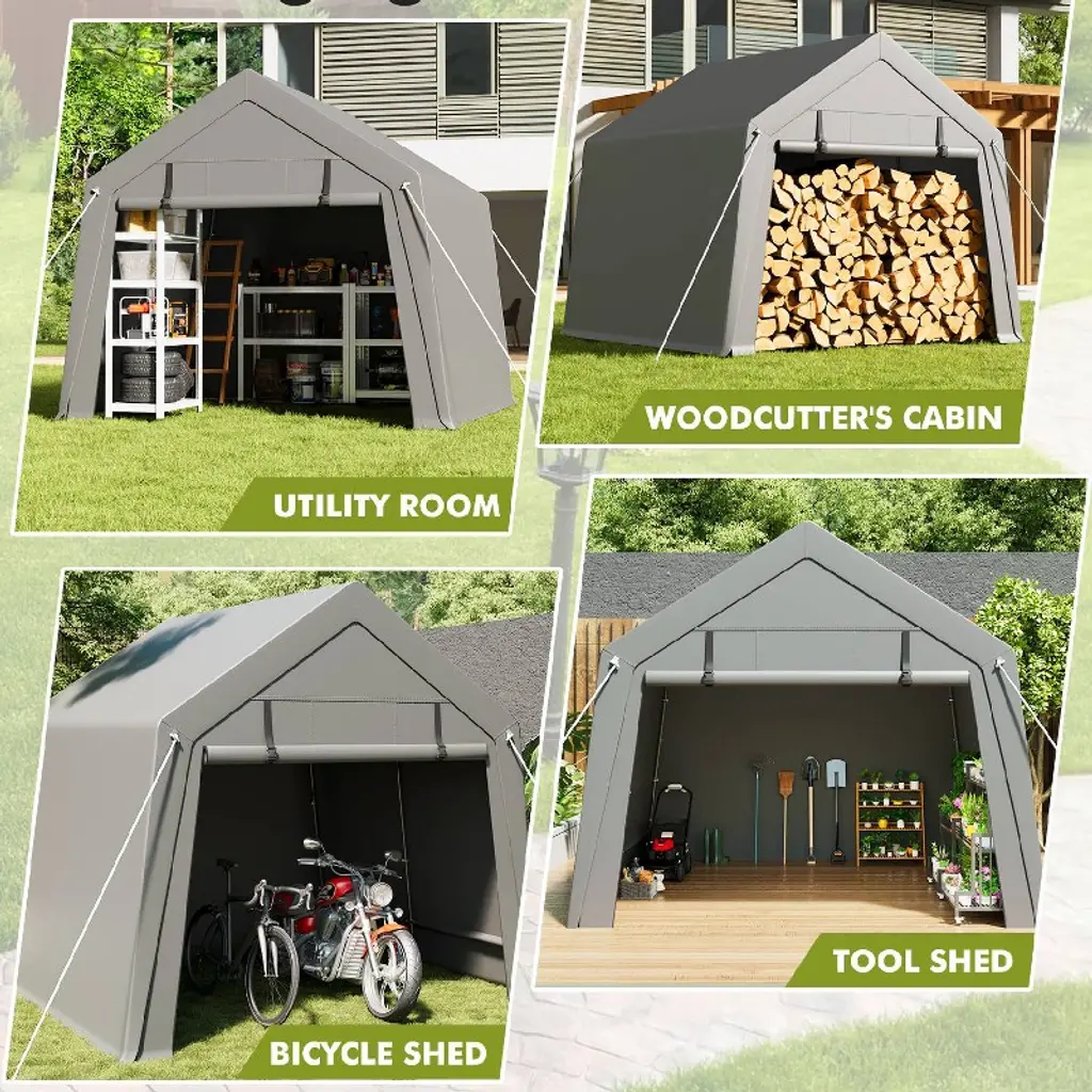 Gustowave 10x10 Ft Outdoor Portable Storage Shed, Carport Tent For Motorcycle, Bike