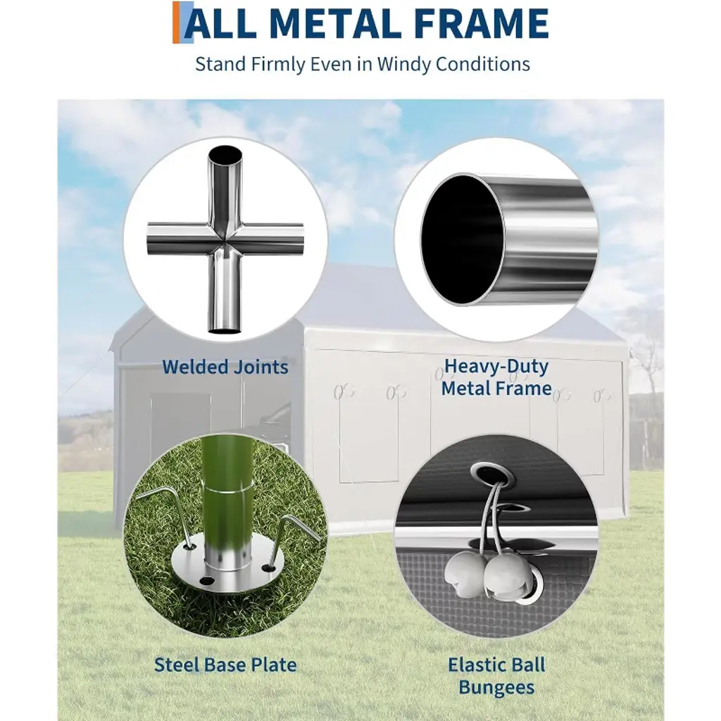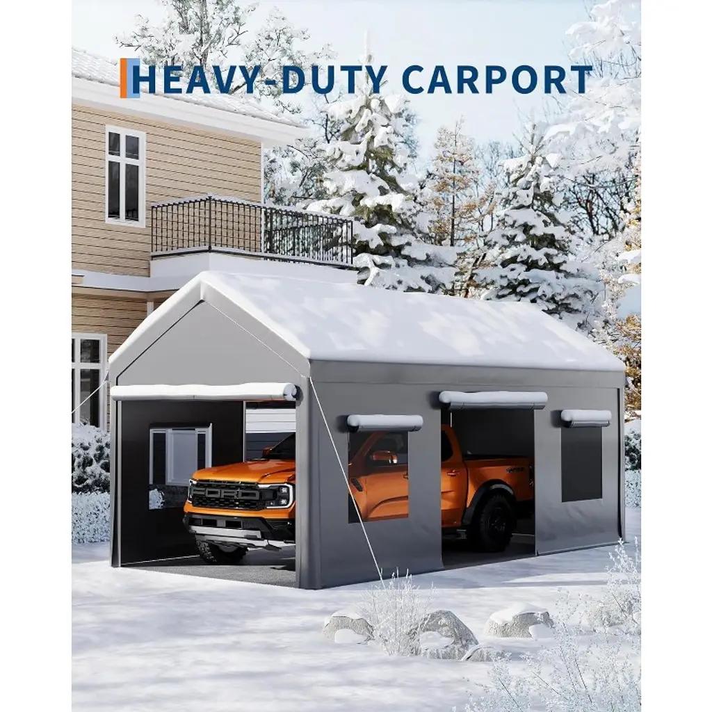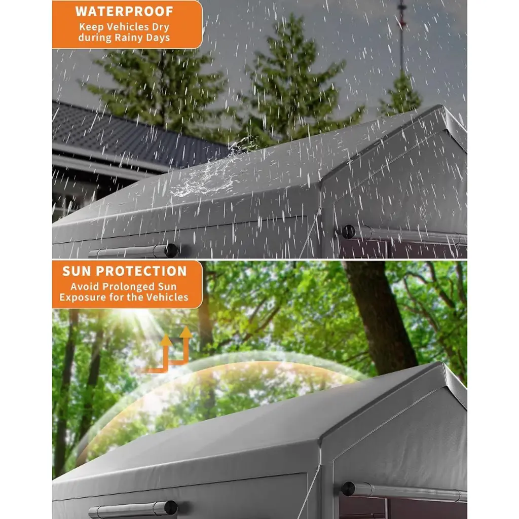 This 10'x20' heavy-duty carport provides spacious, all-season shelter with a waterproof, UV-resistant canopy and a rust-proof powder-coated steel frame for stable, durable protection. Easy to assemble without tools, it¡¯s versatile enough for vehicle storage, outdoor events, and commercial use, accommodating up to 30 people.