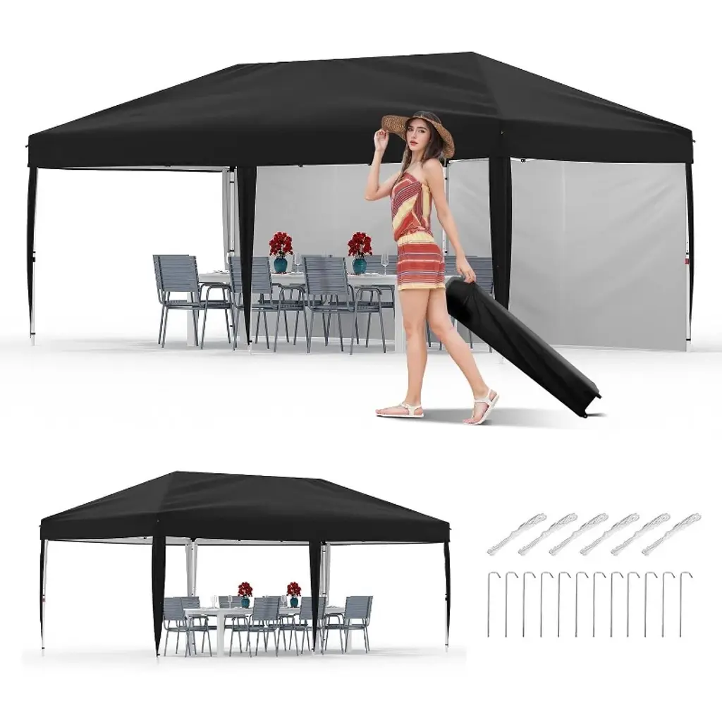 Gustowave 10x20 Ft Portable Waterproof Pop-up Canopy Tent For Camping, Black