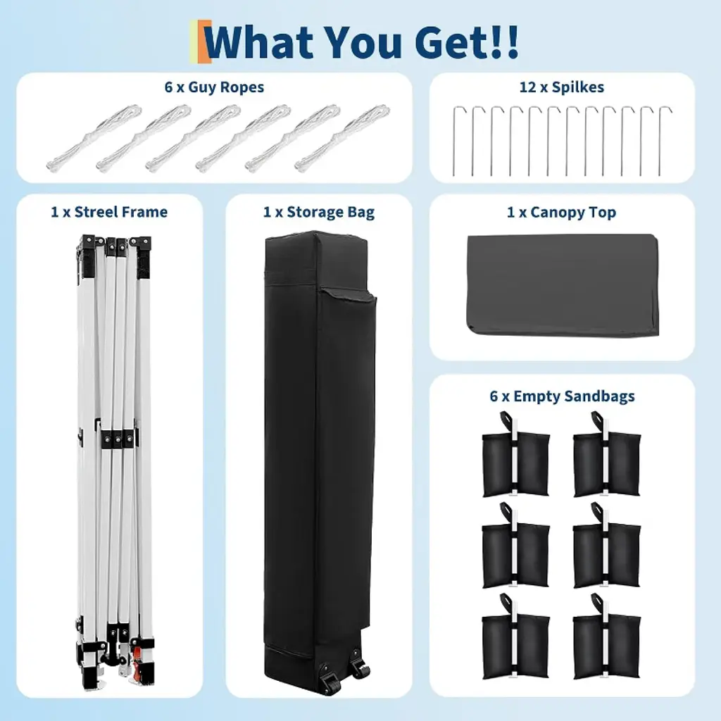 Gustowave 10x20 Ft Portable Waterproof Pop-up Canopy Tent For Camping, Grey