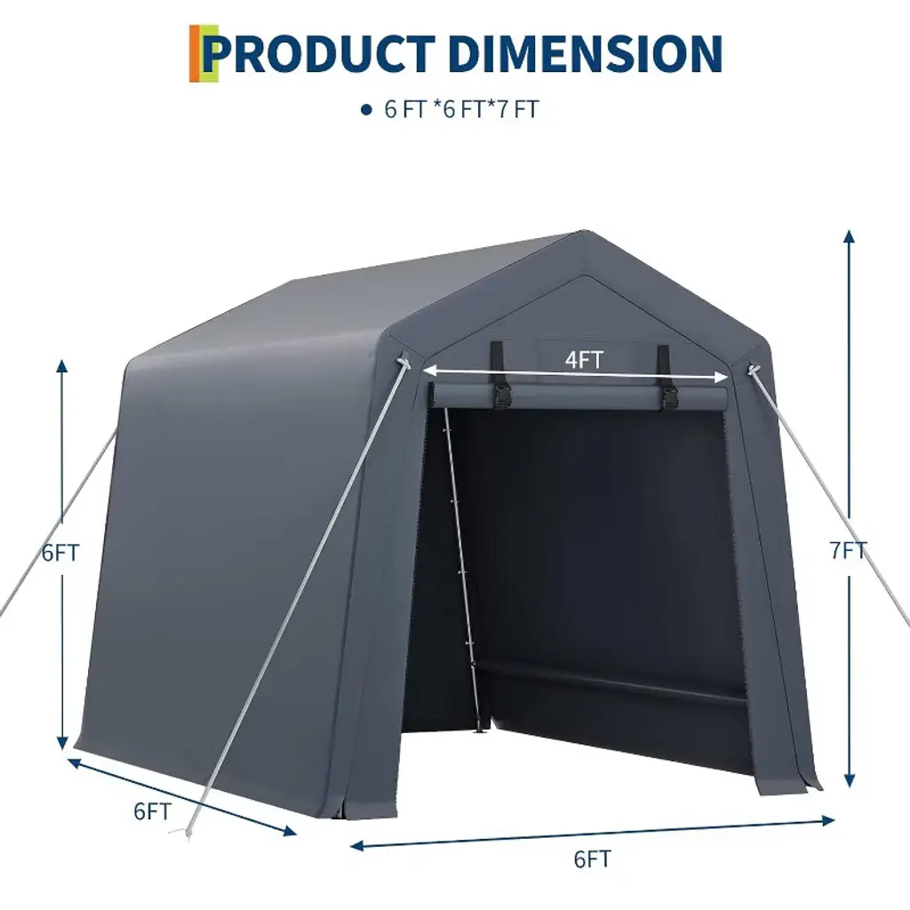 Gustowave 6X6 Ft Portable Outdoor Storage Shed, Uv-resistant Carport For Motorcycle, Firewood, Grey