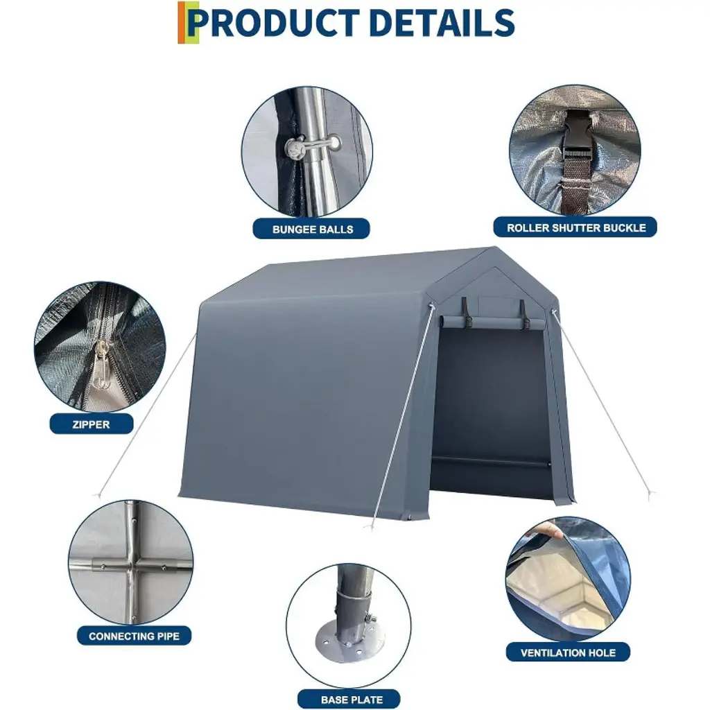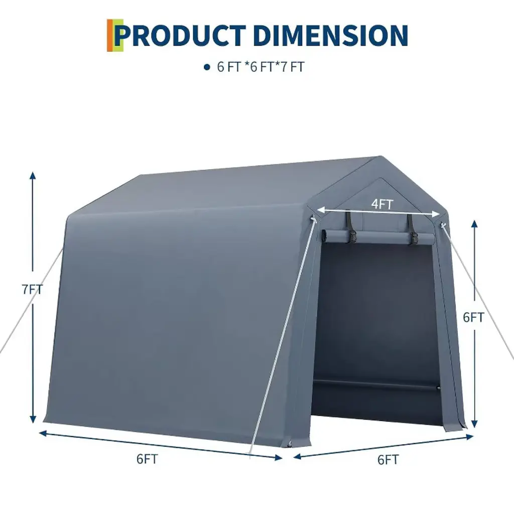 Gustowave 6X6 Ft Waterproof Portable Garage Shelter Shed Carport For Motorcycle Bike