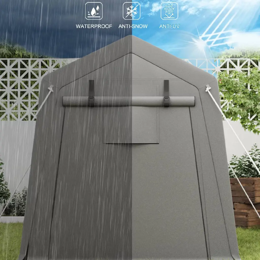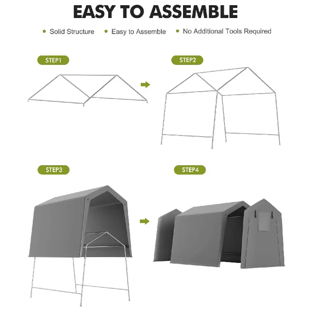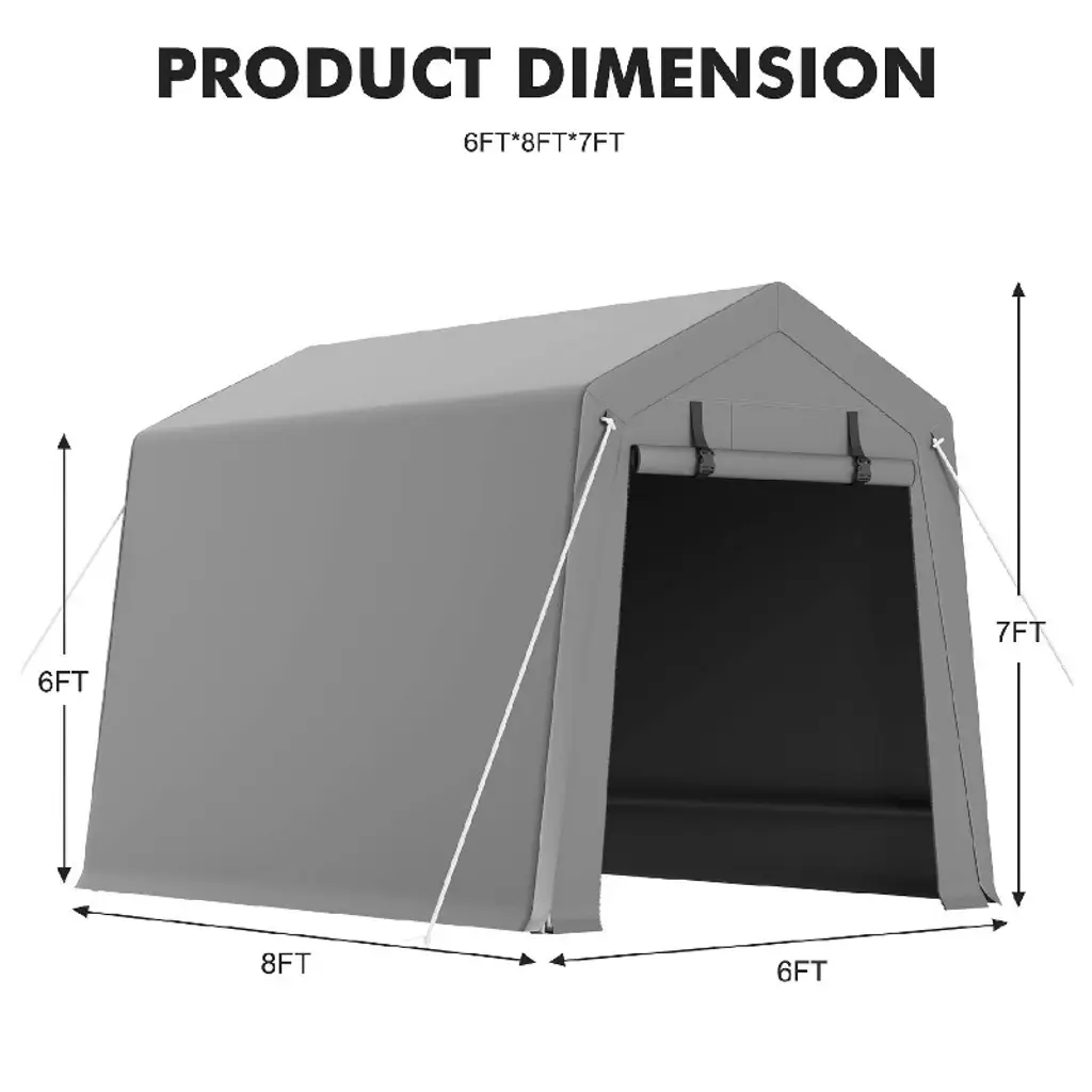 Gustowave 6X8 Ft Outdoor Portable Storage Shed, Carport Tent For Motorcycle, Bike