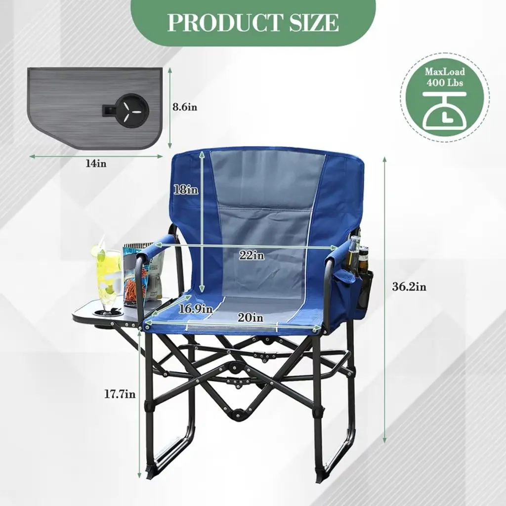 Gustowave Outdoor Camping Directors Chair, Foldable Camp Chairs, Oversized Portable Directors Chair With Side Table, Pocket, Navy Blue(2 Pcs)