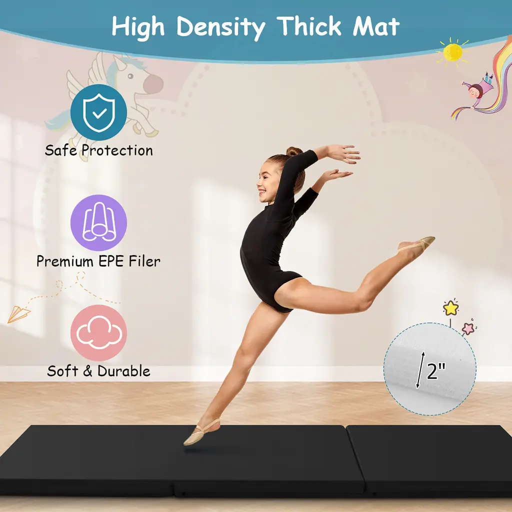 Gymax Tri-Fold Folding Exercise Mat 6 Ft X 2 Ft Portable Gymnastics - Black